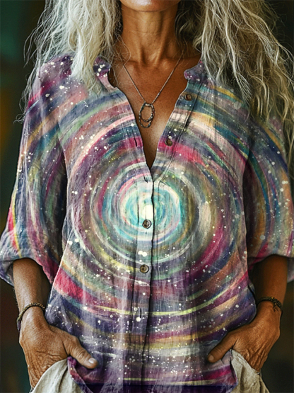 Women's Colorful Gouache Kaleidoscope Pattern Art Print Casual Cotton Shirt