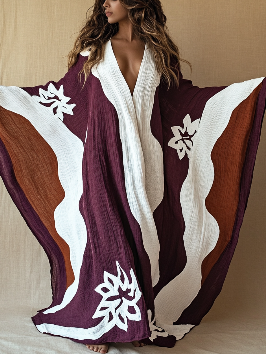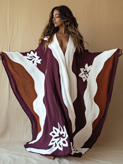 Women's Paintbrush Art Flower Linen V-Neck Long Gown
