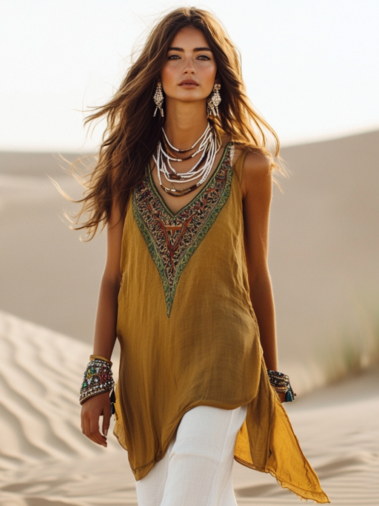 Women's Retro Loose Bohemia Ethnic Style Linen Suspender Sleeveless Top