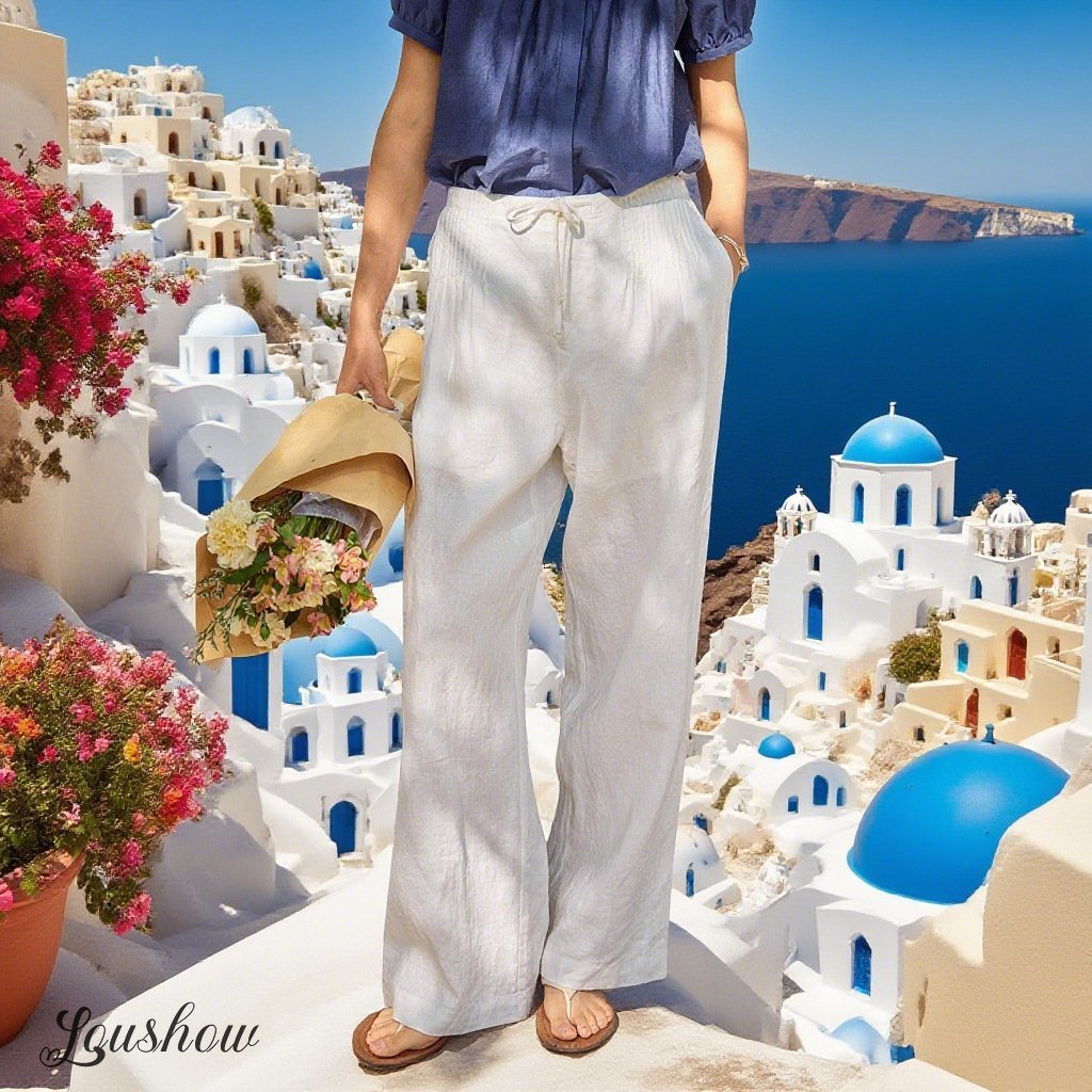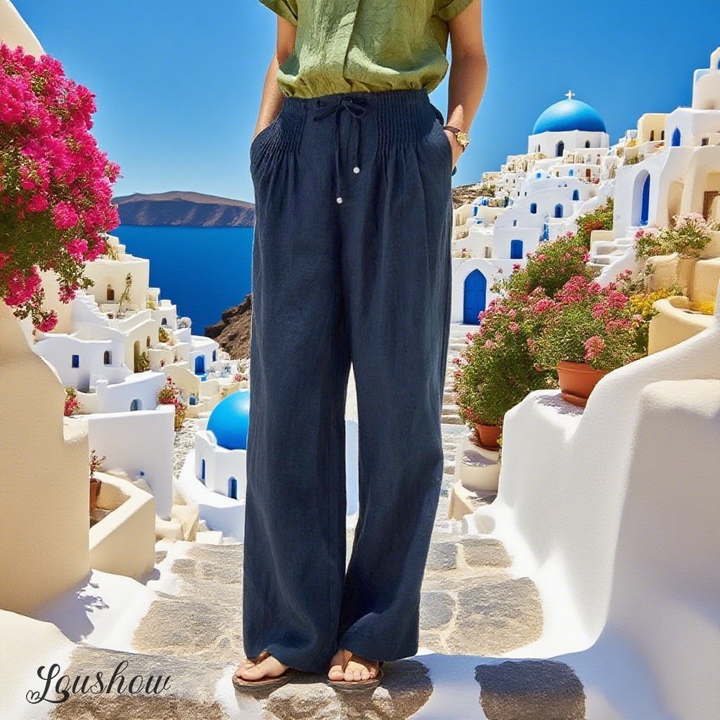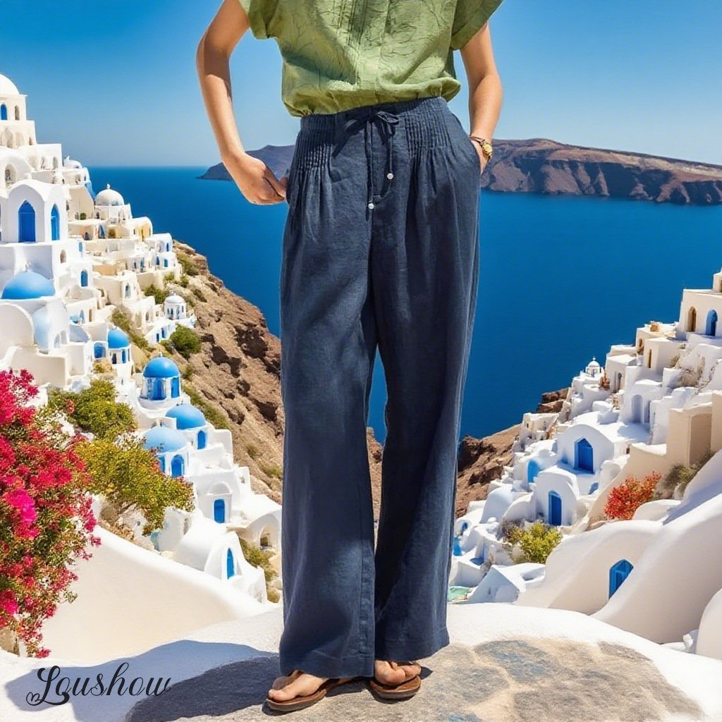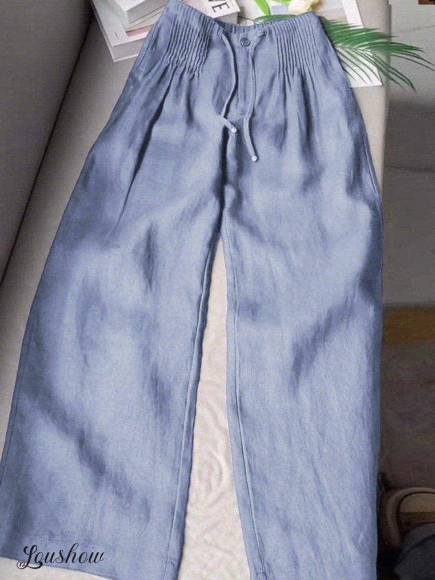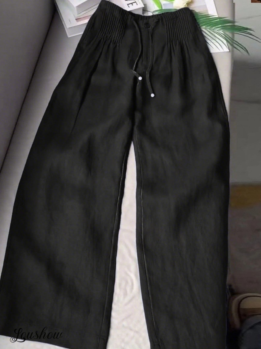 🔥Limited time promotion Women's Solid Color Pleated Drawstring Casual Cotton and Linen Wide Leg Pants