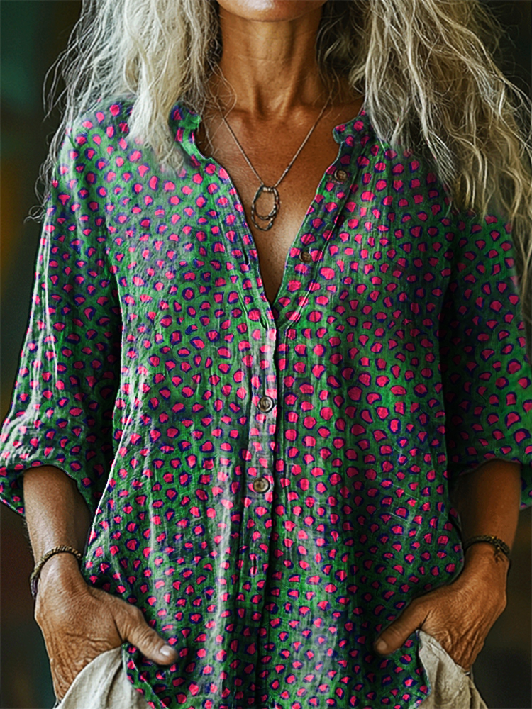 Women's Vintage Bohemian Art Print Casual Cotton Linen Shirt