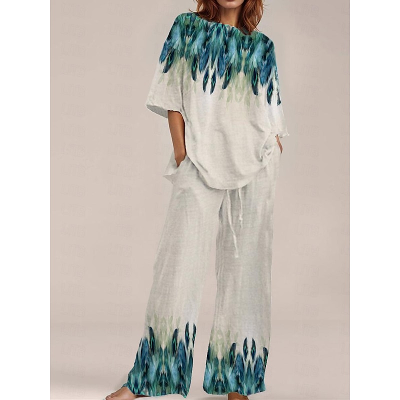 Women's casual spring and summer linen two-piece set