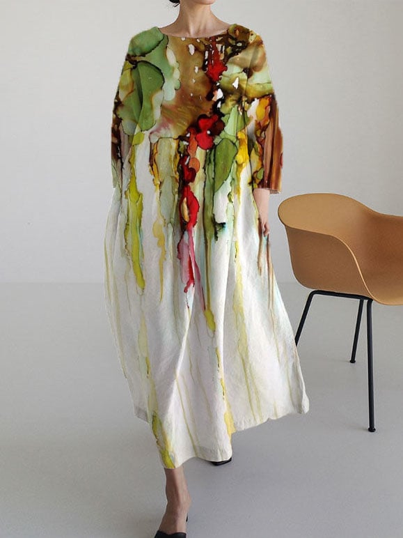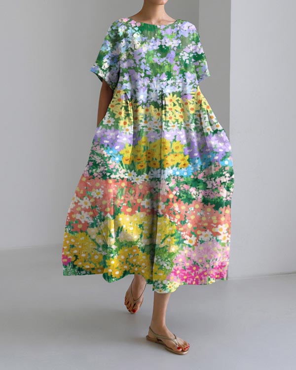 Women's Vintage Flower Art Print Casual Maxi Dress