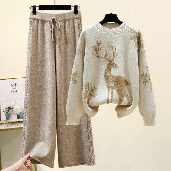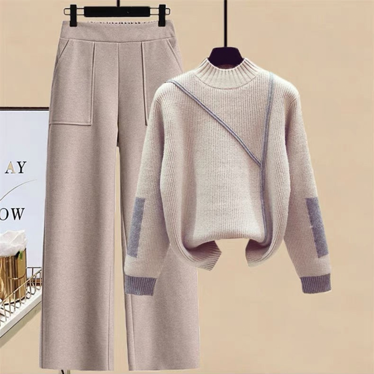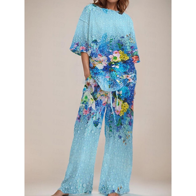 Casual Two-Pieces Outfits Solid Color Casual Top Loose Bootcut Trousers Pants Sets