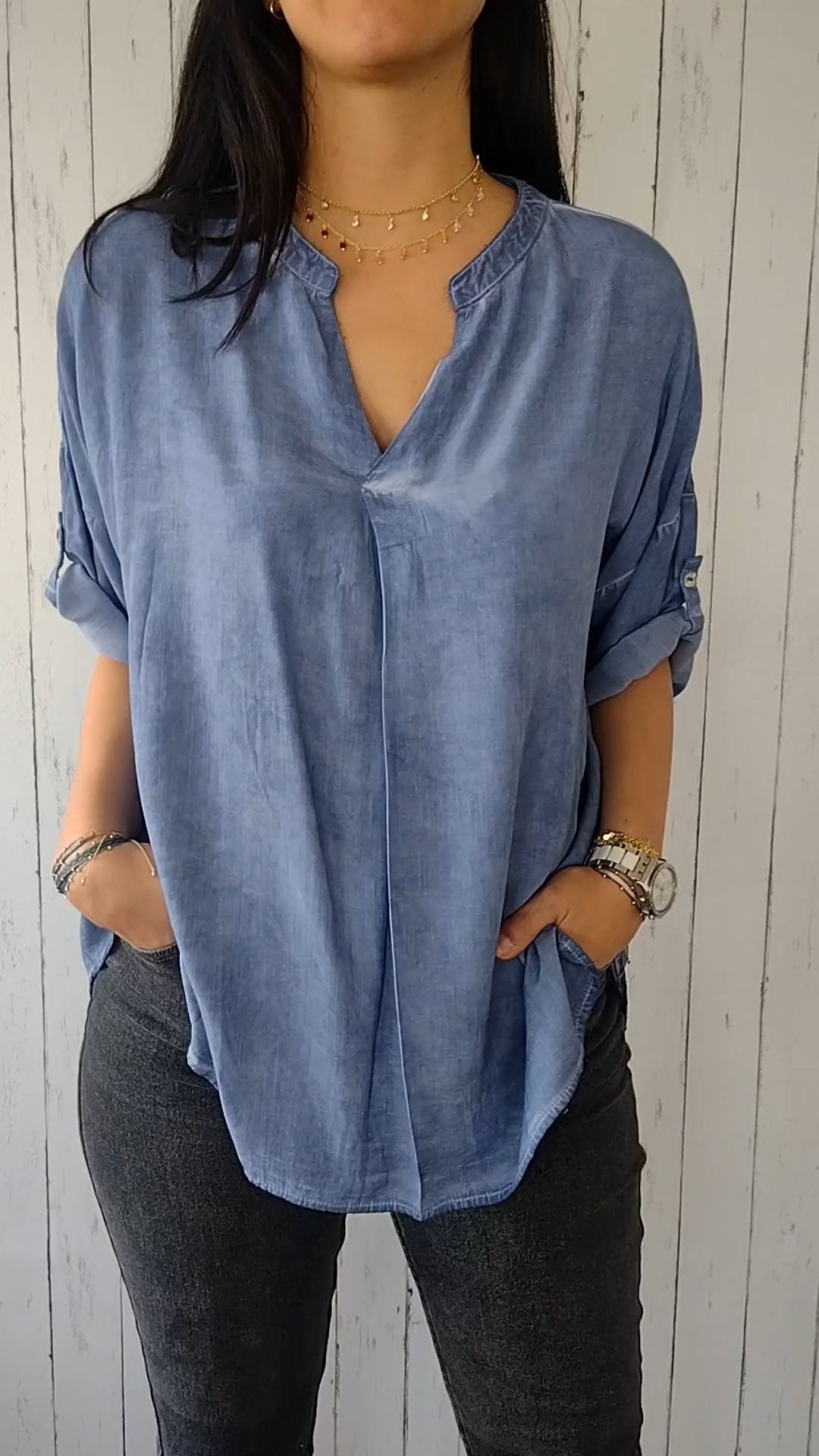 Women's Cotton and Linen Double Layer Slit V-Neck Dresses