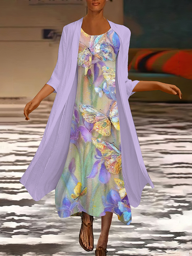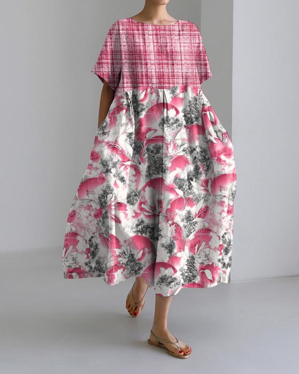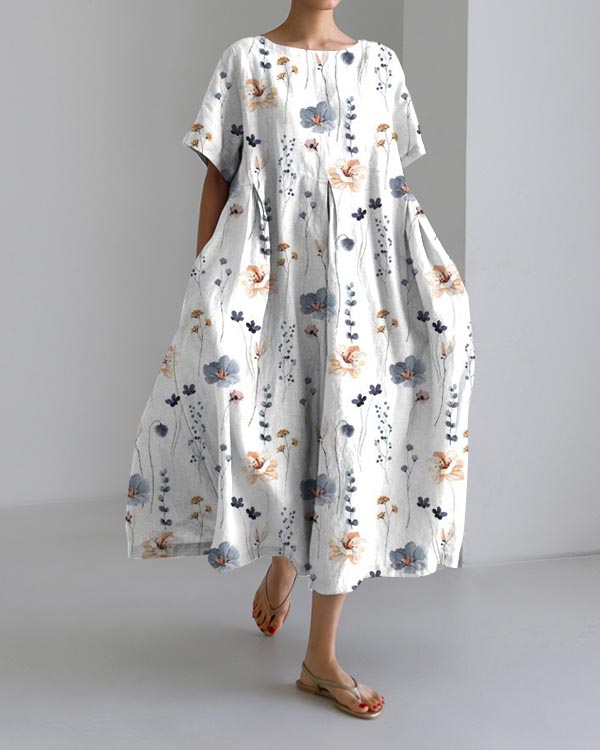 Ladies Botanical Floral Design Casual Loose Dress