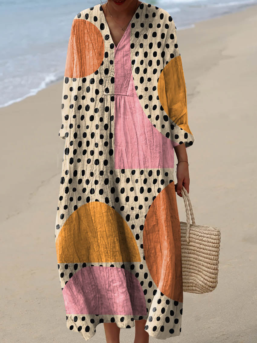 Women's Abstract Spot Color Block Art Print Flowy Dress