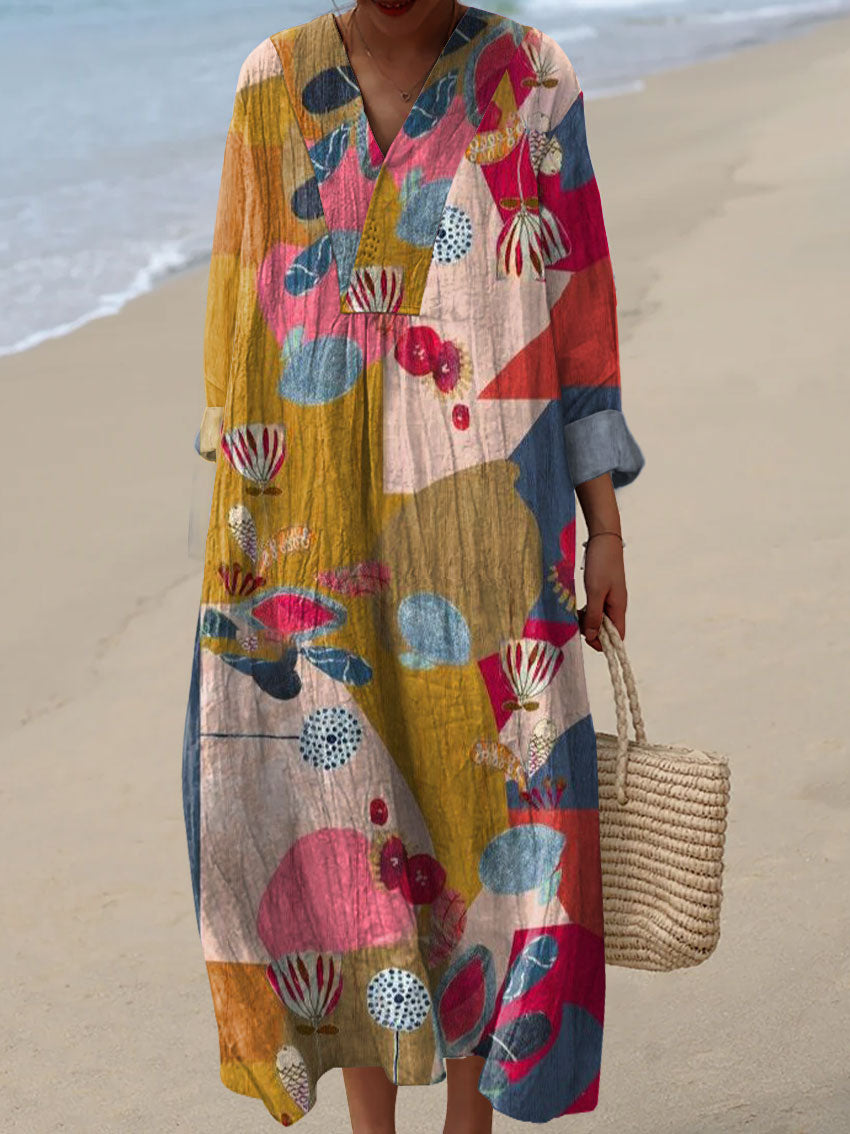Women's Abstract Pattern Art Print Cotton Dress