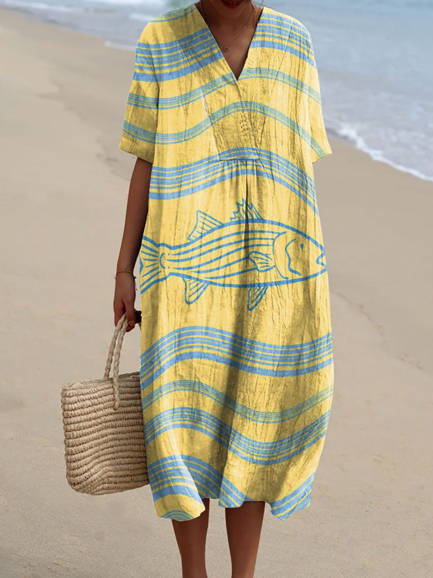 Women's Abstract Line Pattern Art Print Cotton Dress