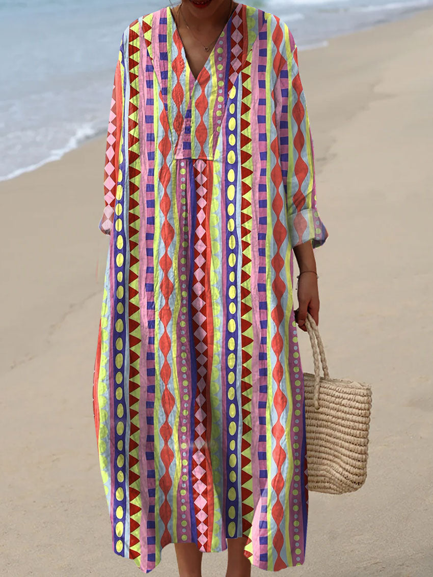 Women's Abstract Geometric Pattern Art Print Cotton Dress