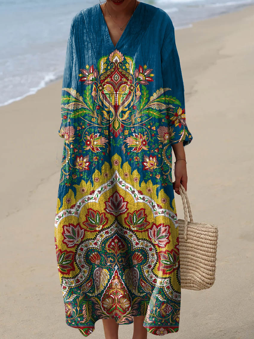 Women's Retro Ethnic Style Symmetrical Pattern Pocket Cotton Dress