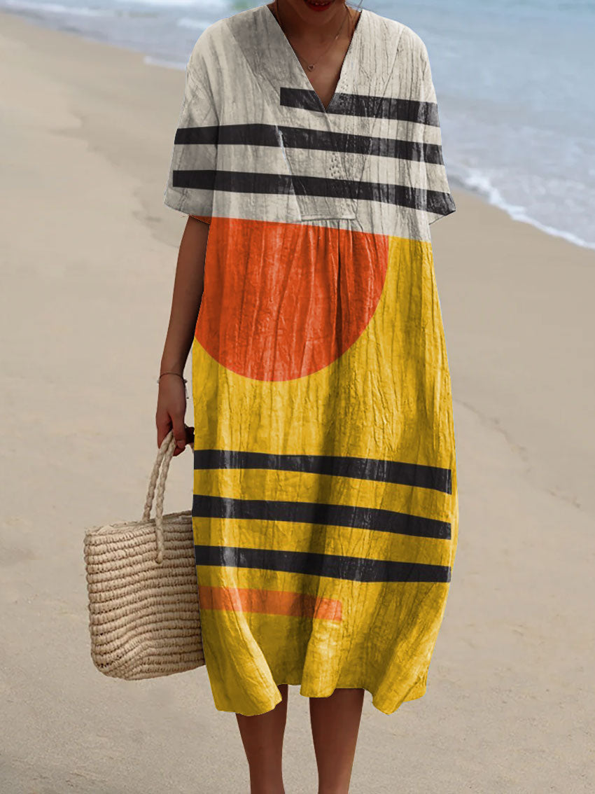 Women's Abstract Geometric Line Pattern Art Print Cotton Dress