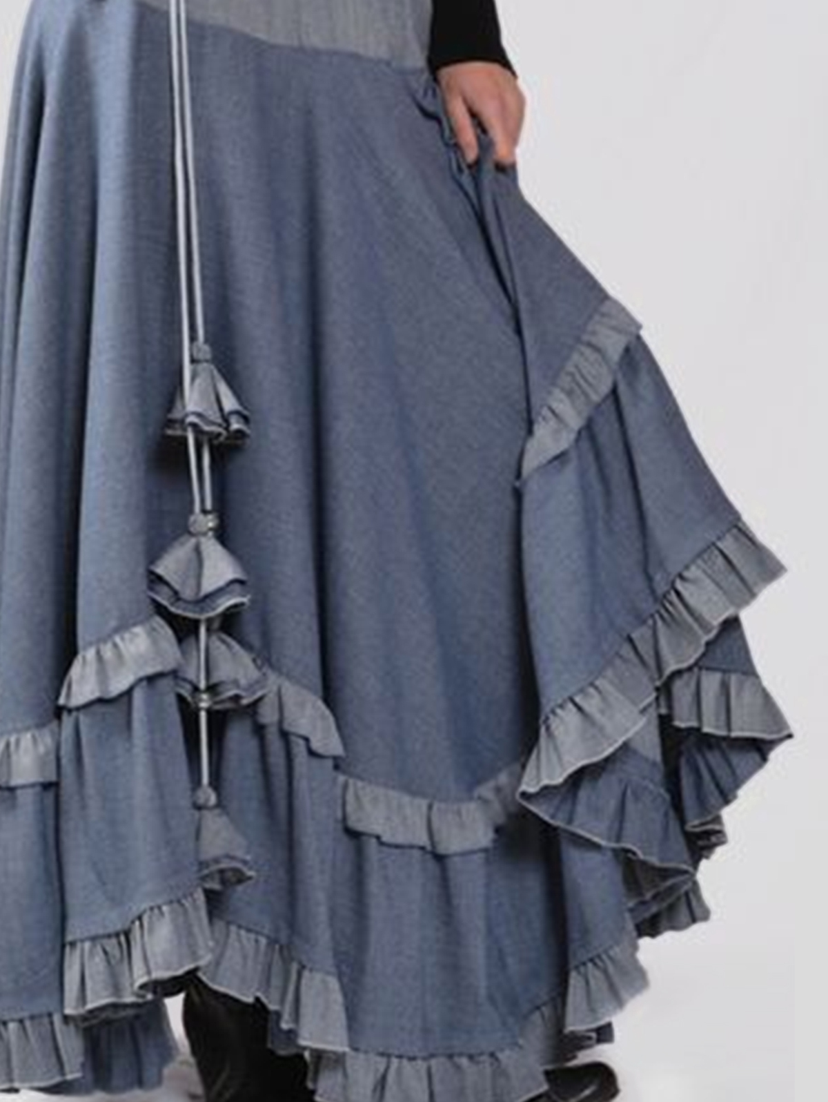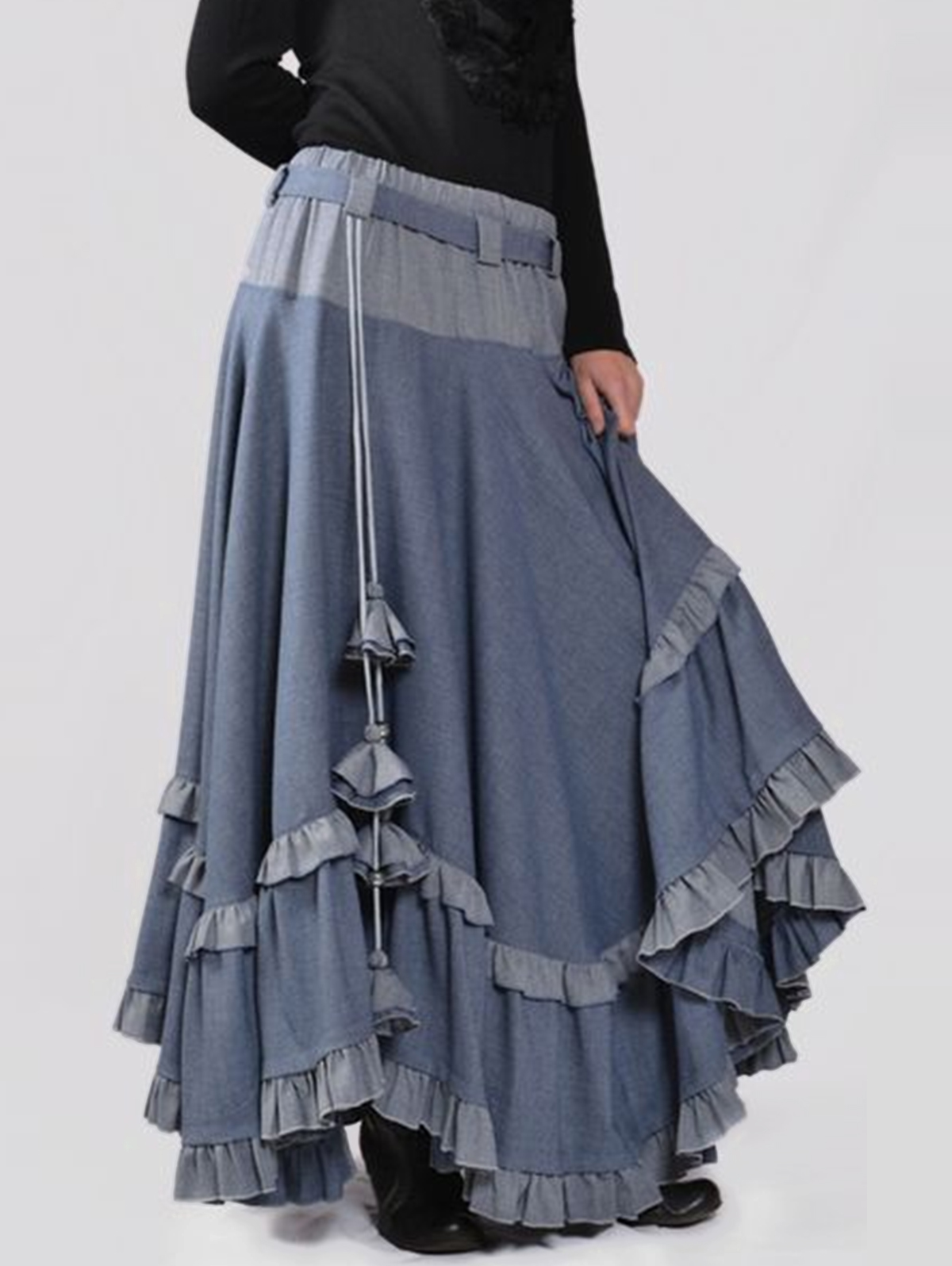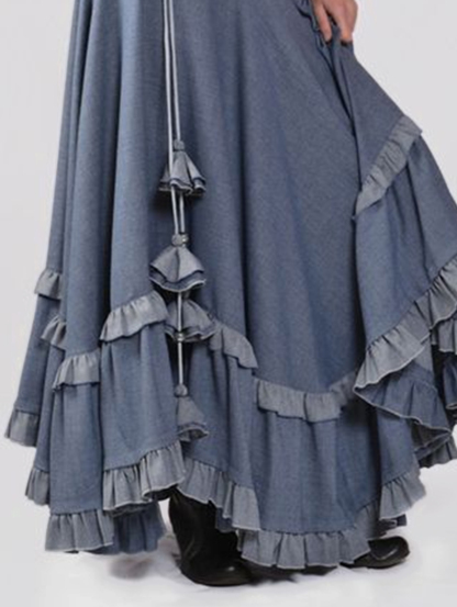 Casual Colorblock Ruffle Trim Drawstring Tiered Maxi Skirt