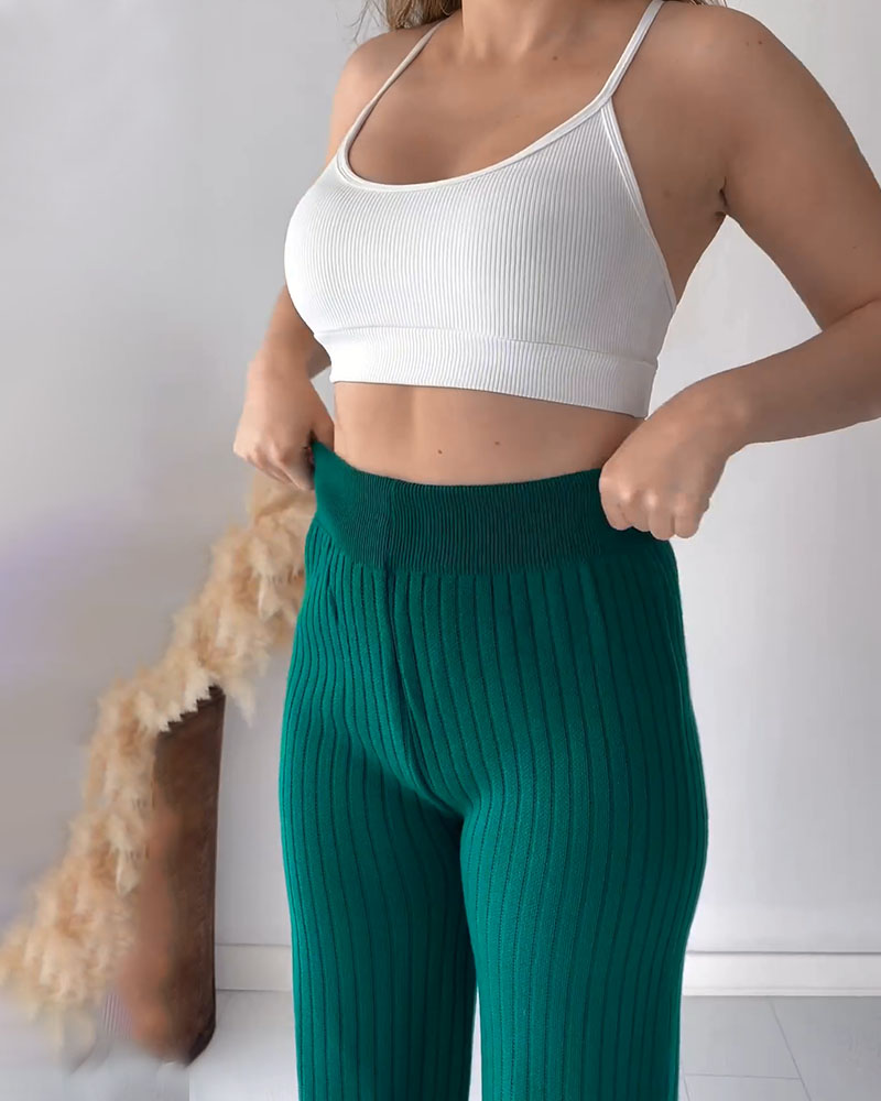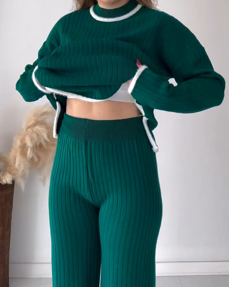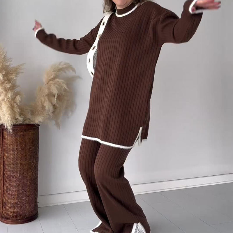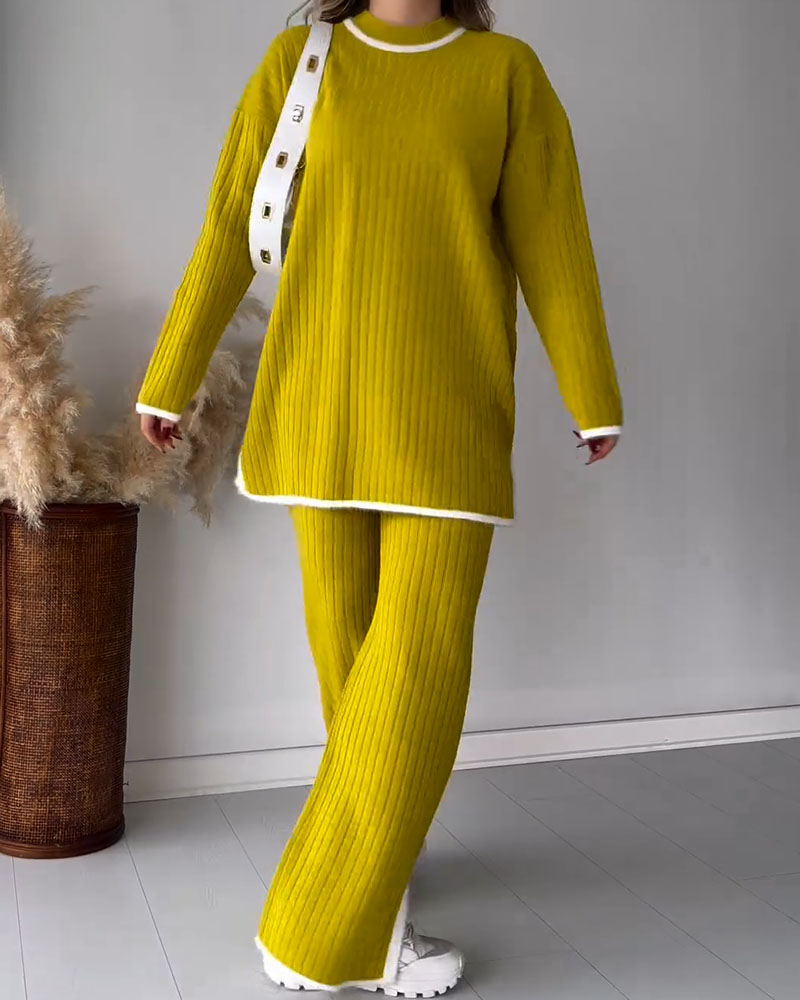 Contrast color edge slit casual two-piece set