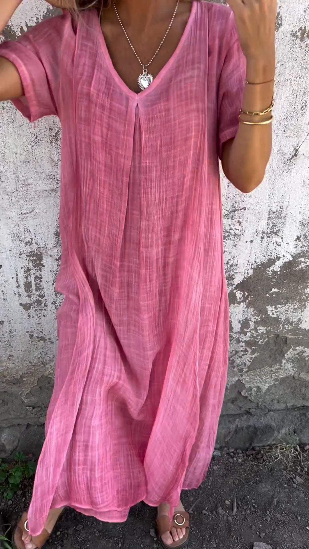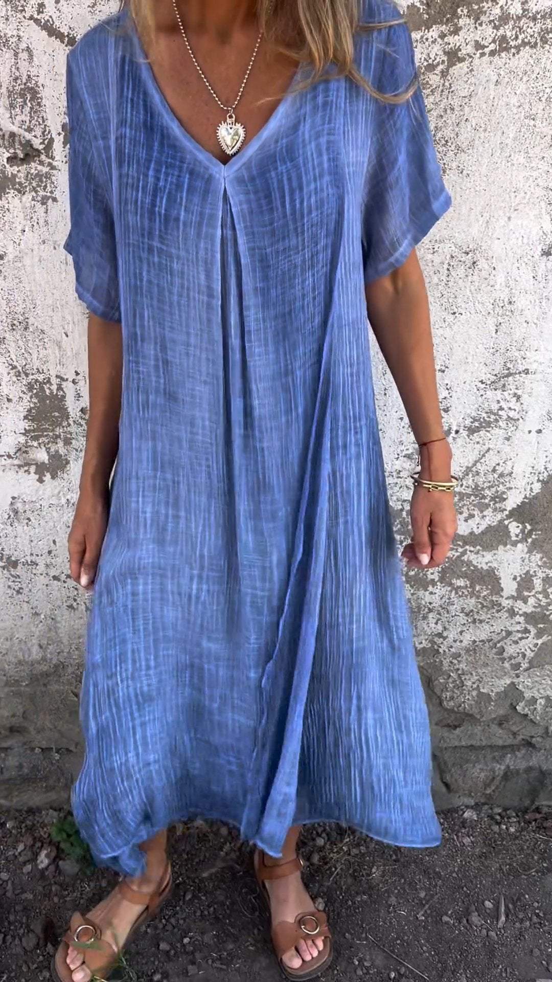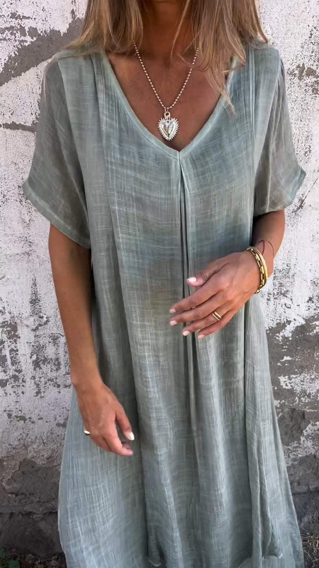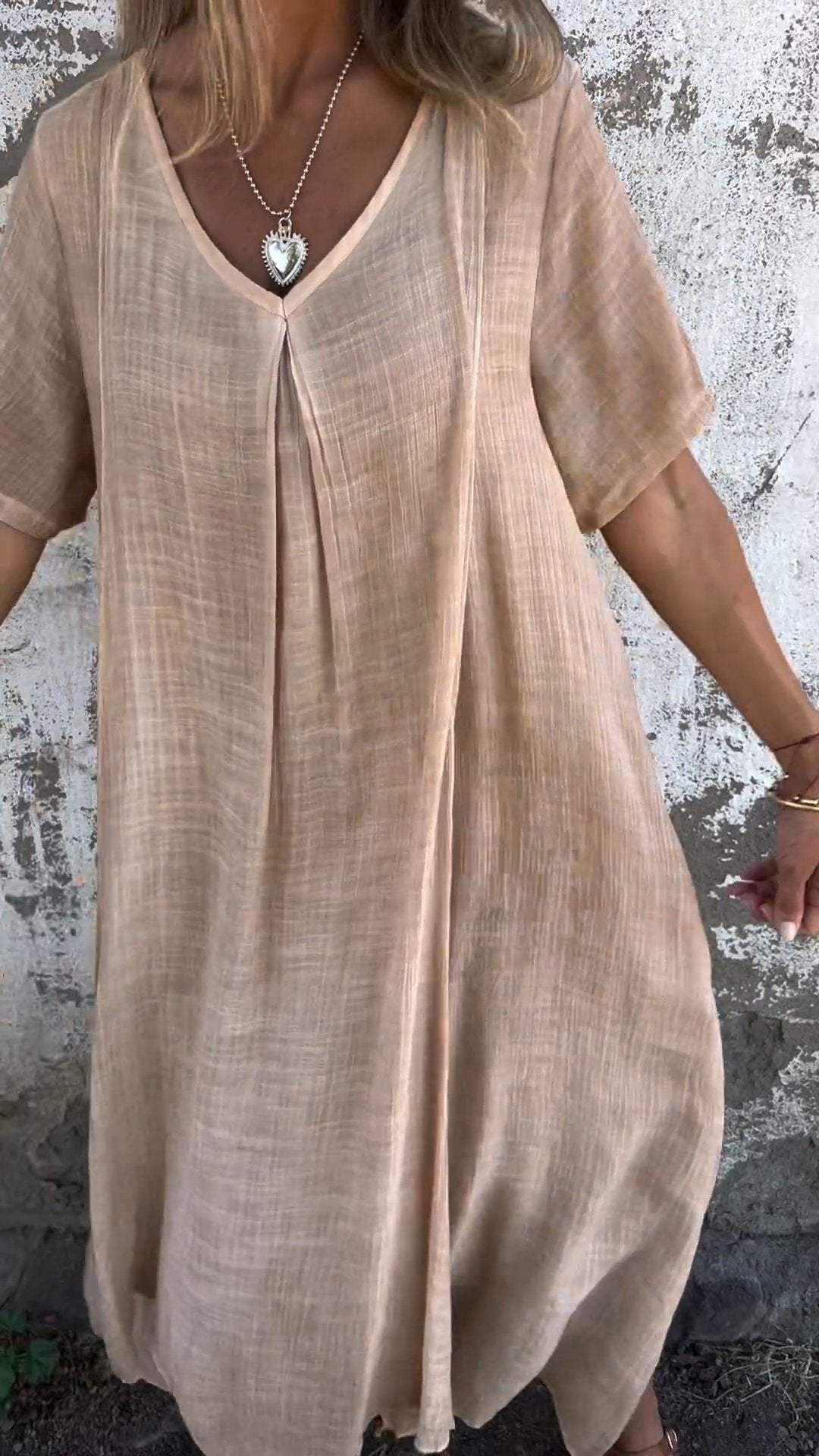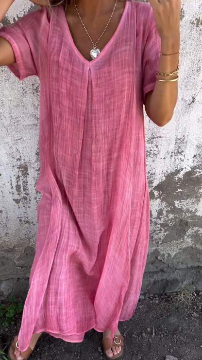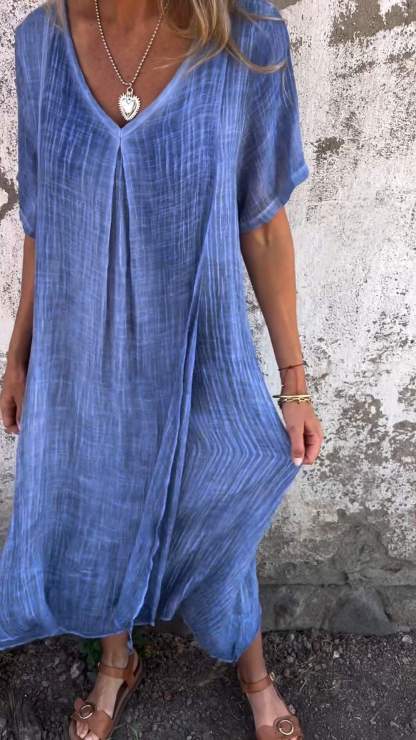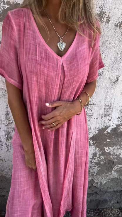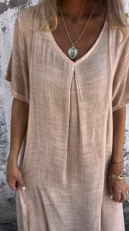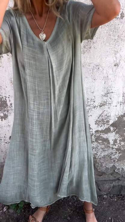 Cotton and Linen V-neck Midi Dress