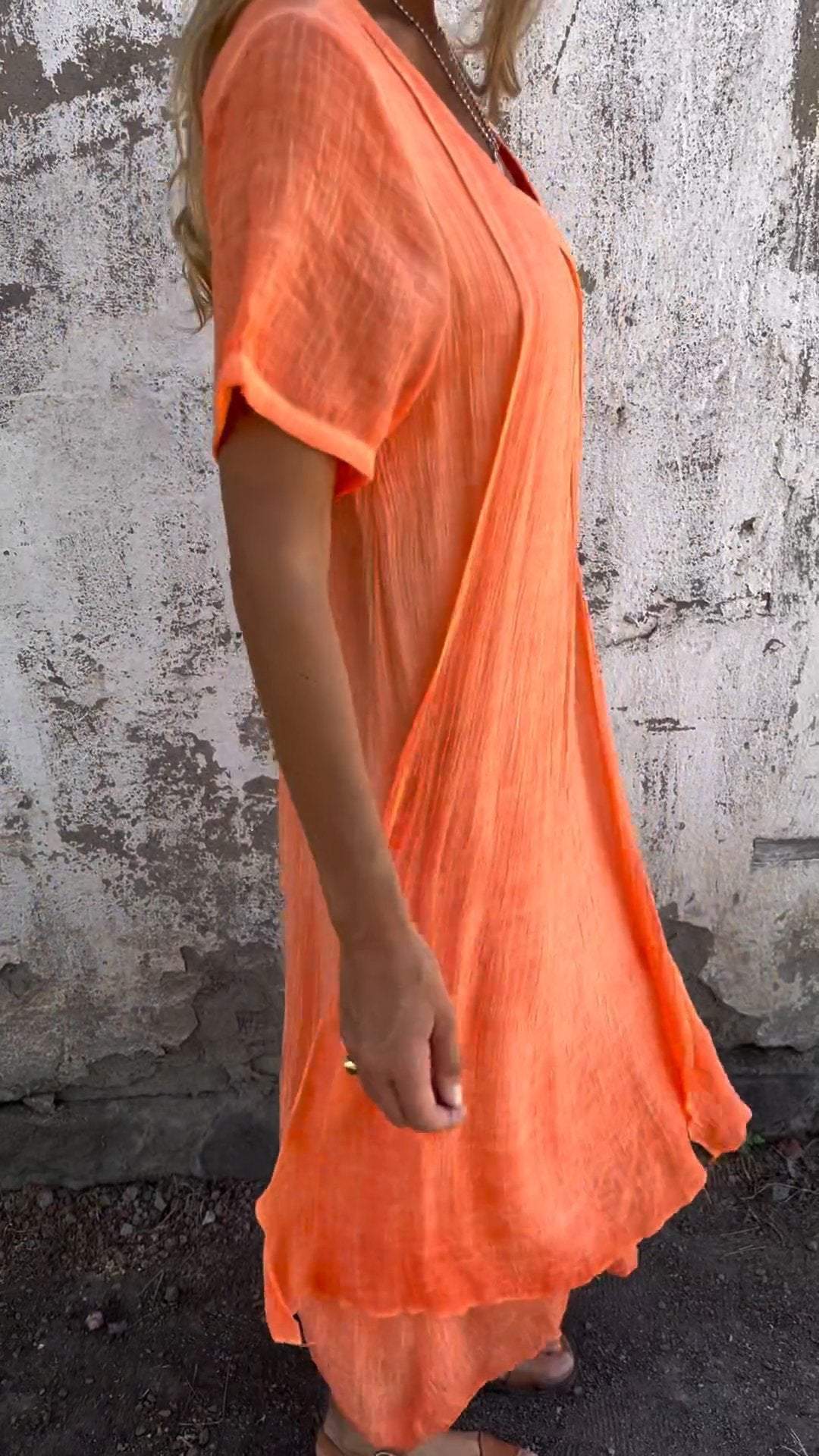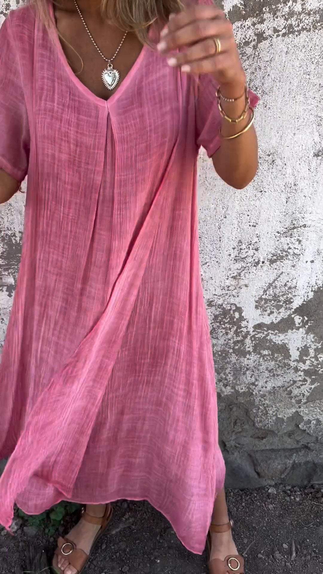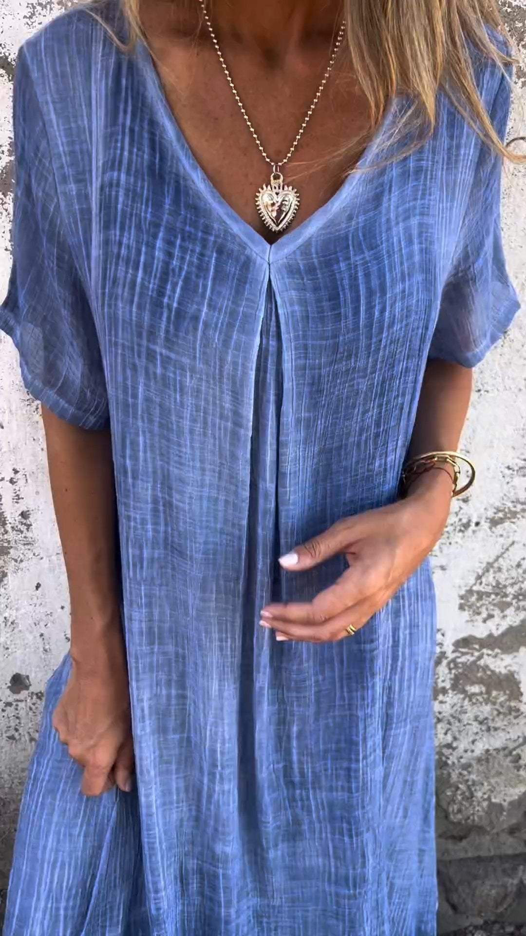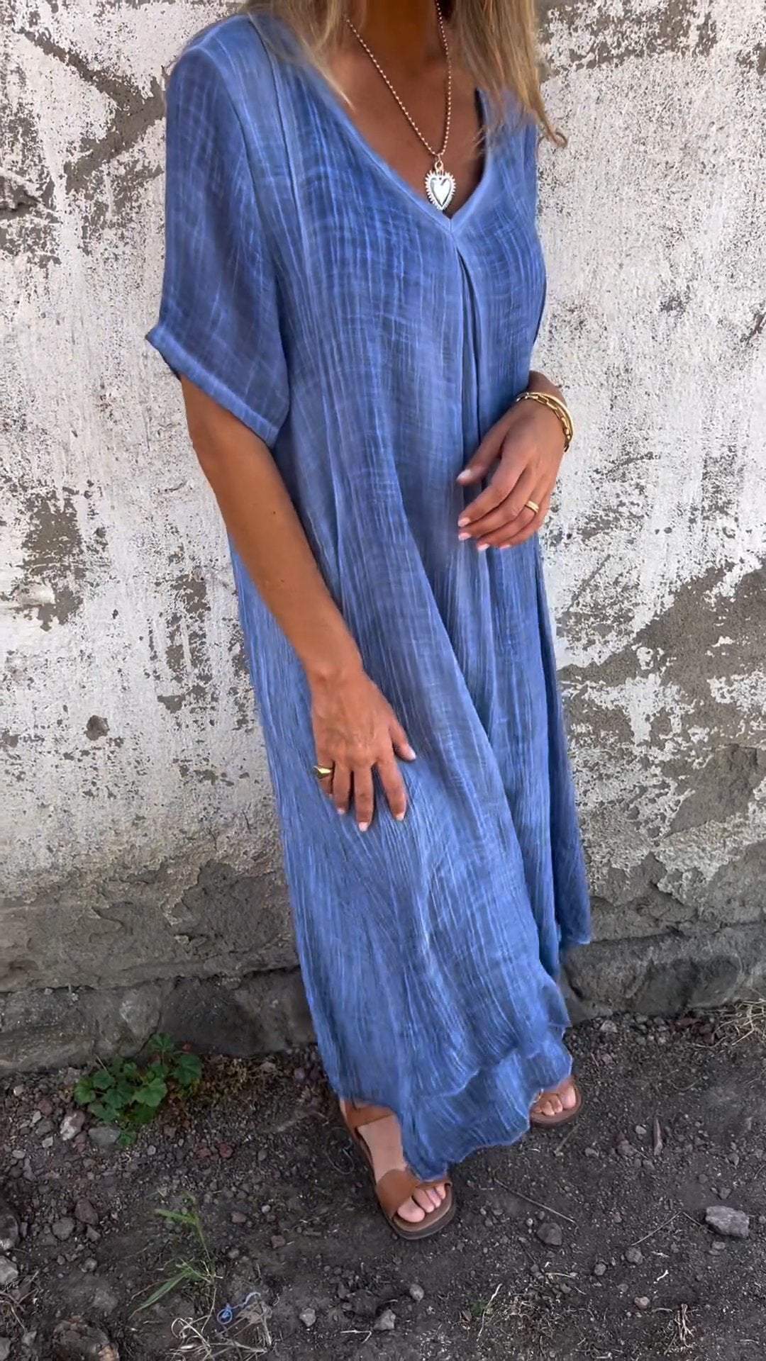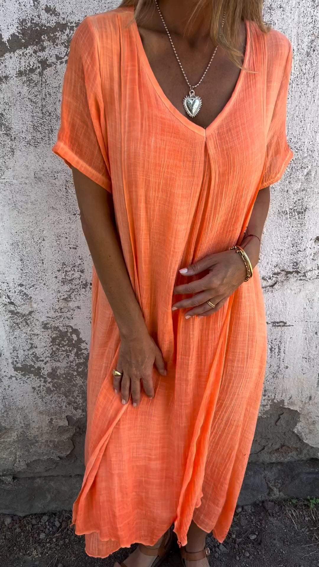 Cotton and Linen V-neck Midi Dress