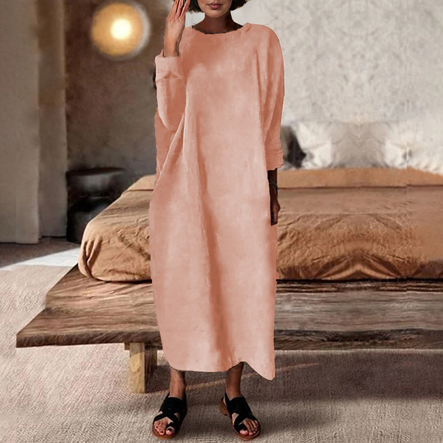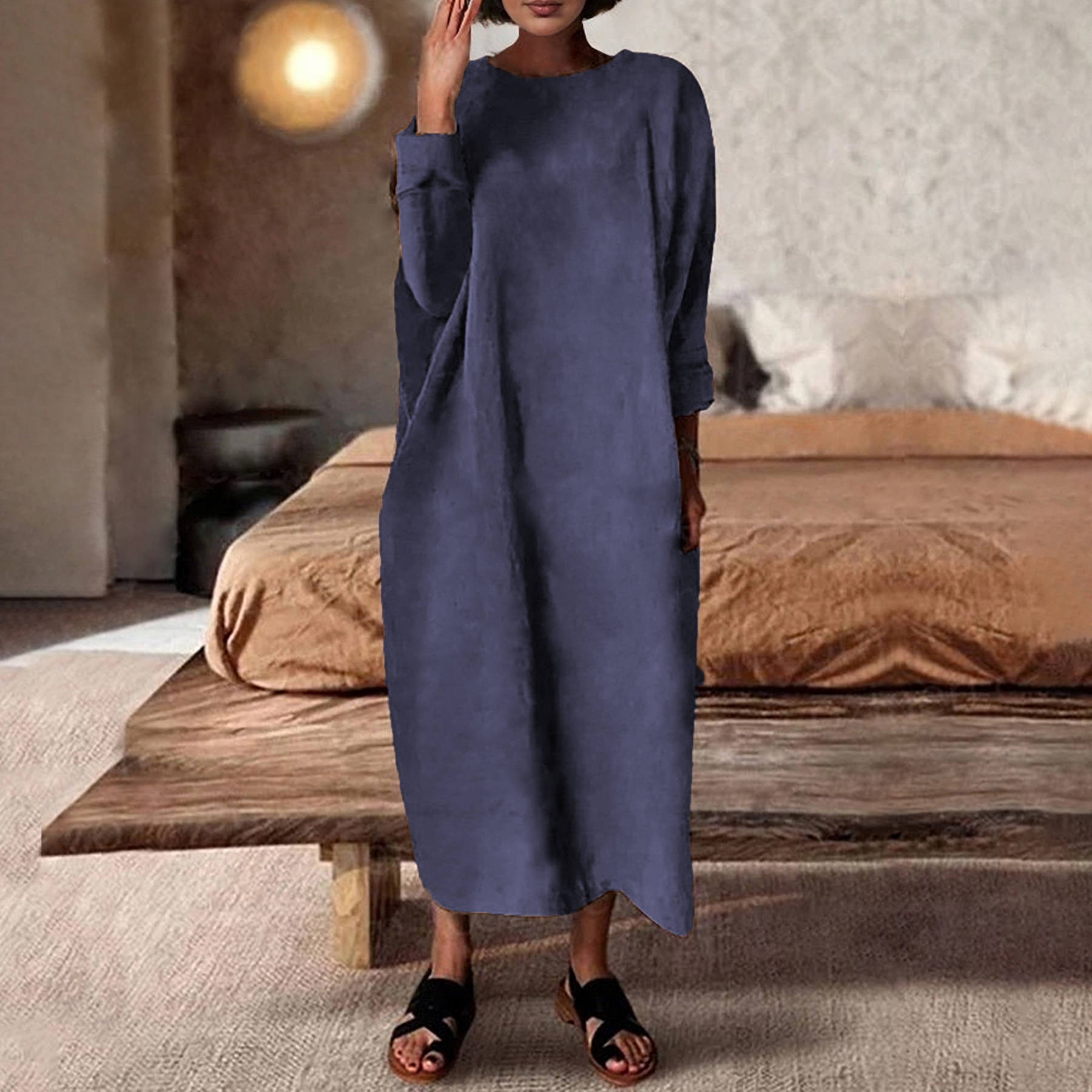 【Plus Size】Cotton Short Sleeve Loose Casual Maxi Dress