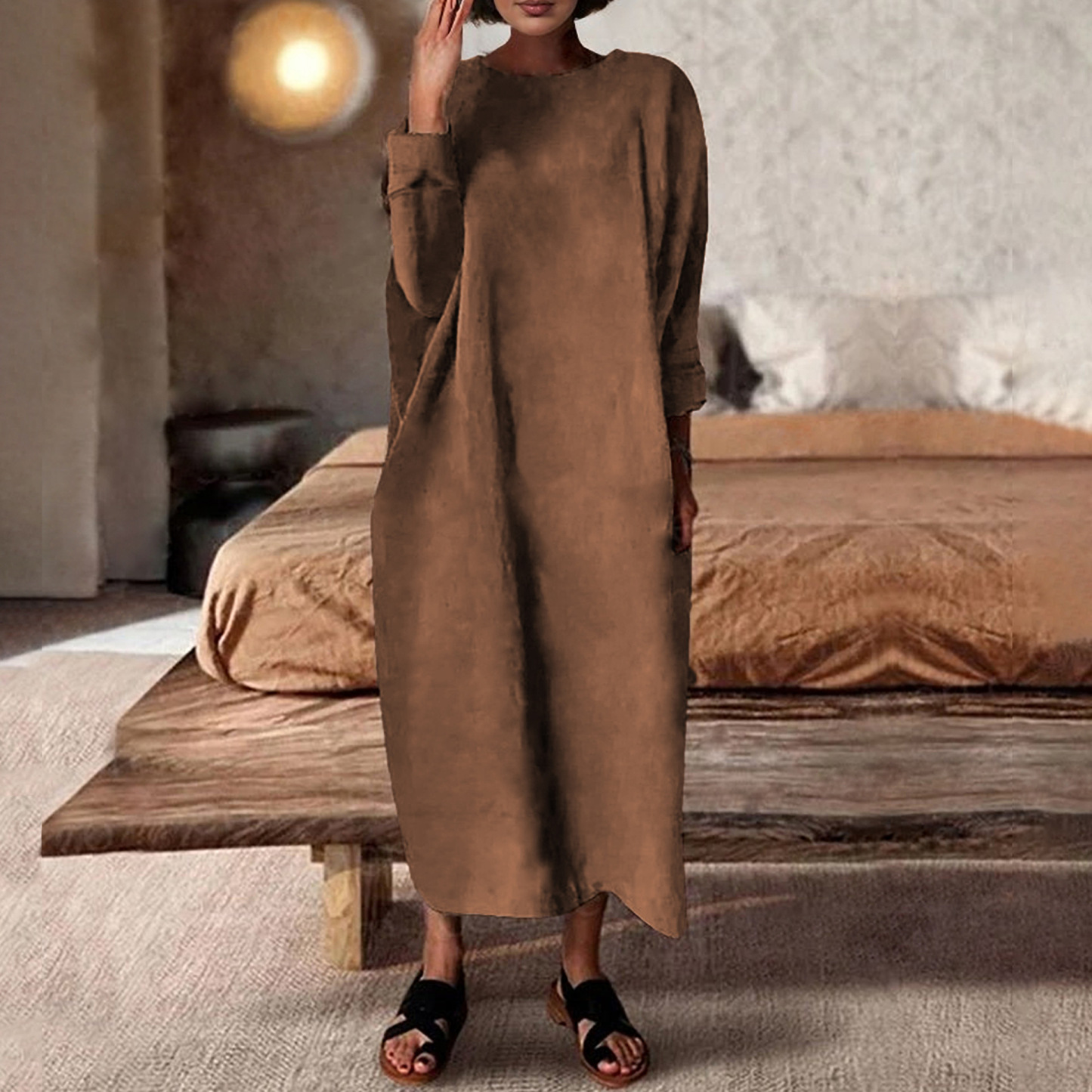 [Plus Size]Cotton Short Sleeve Loose Casual Maxi Dress