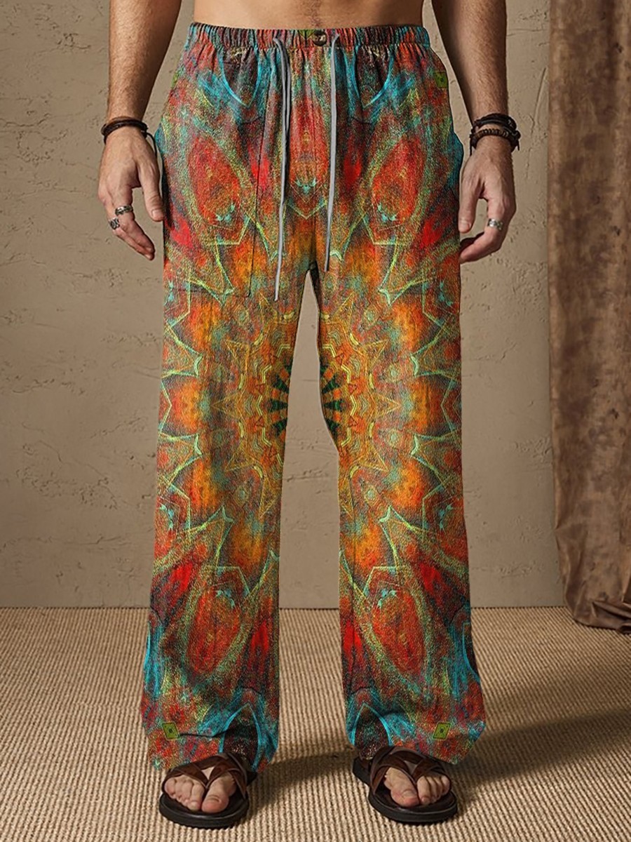 Men's Retro kaleidoscope pattern Print Comfy 100% Cotton Pants