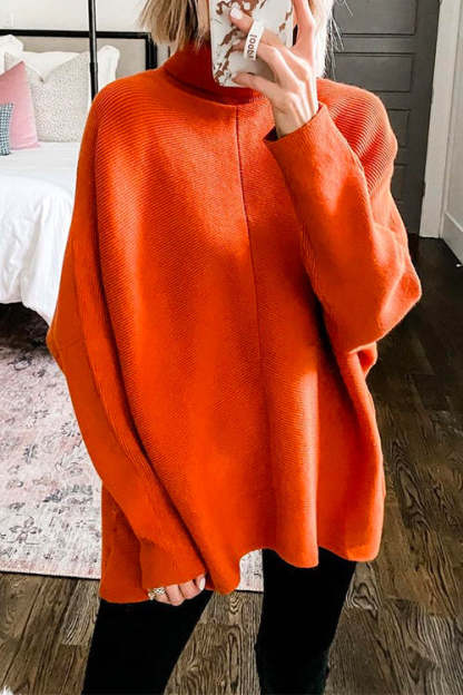 Solid Turtleneck Ribbed Knit Tunic Sweater