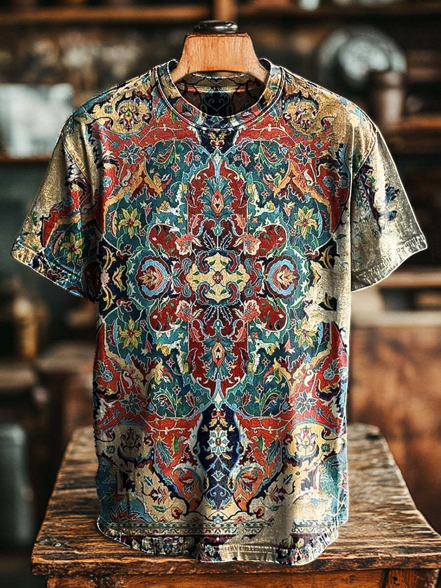 Unisex Retro Abstract Ethnic Floral Print Casual Loose Short Sleeve T-Shirt