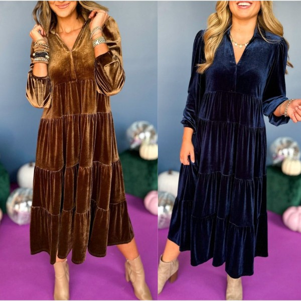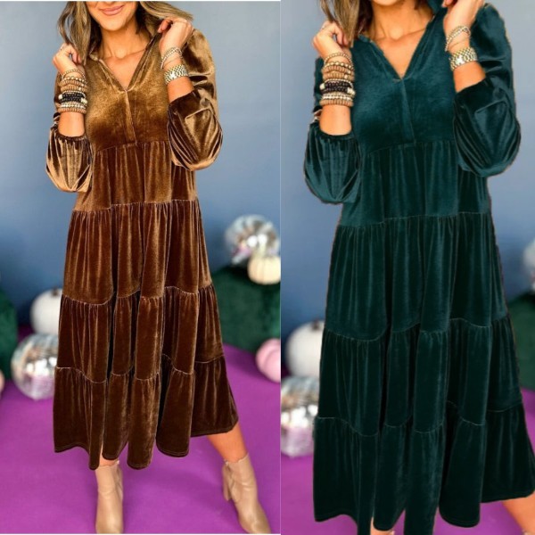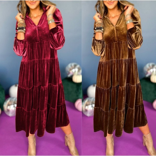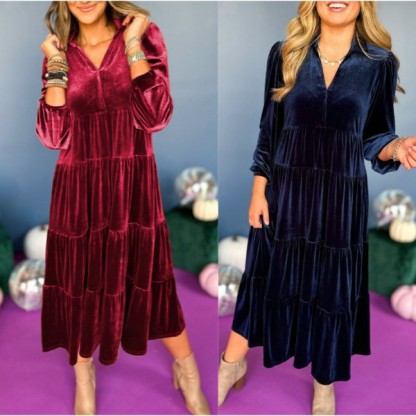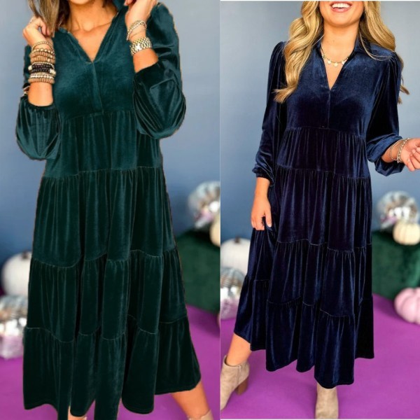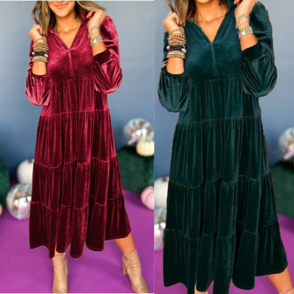🎁V Neck Velvet Dress
