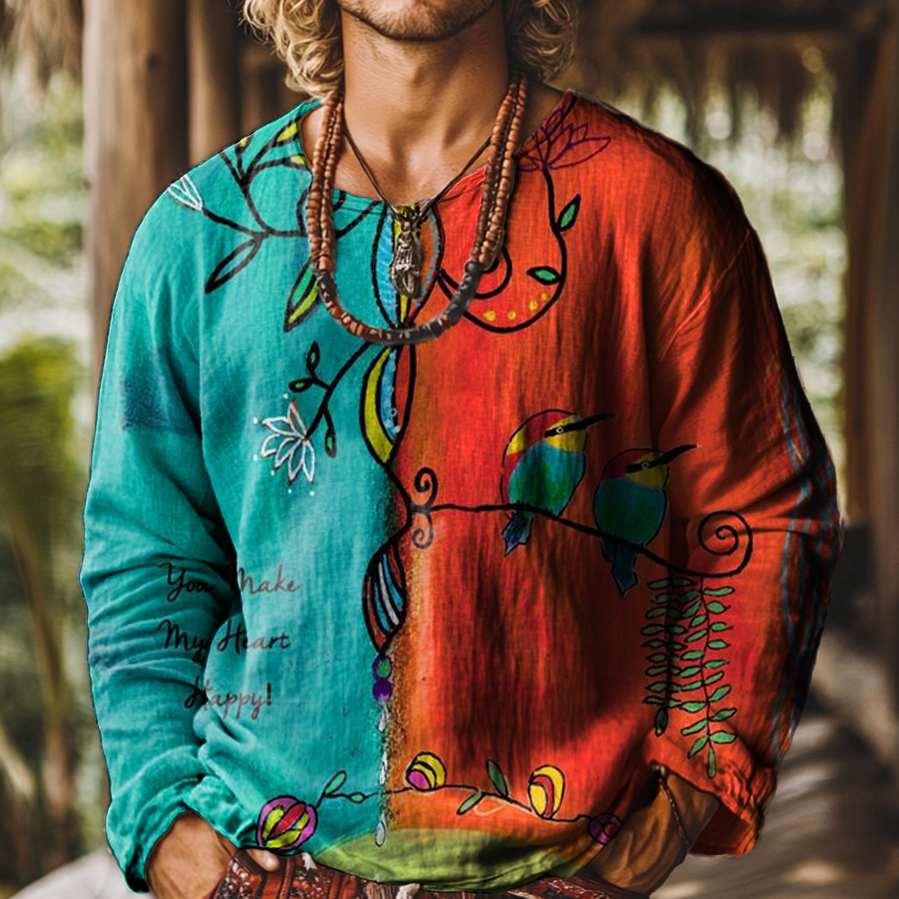 Vintage Floral Bird Art Print Casual 100% Cotton Shirt