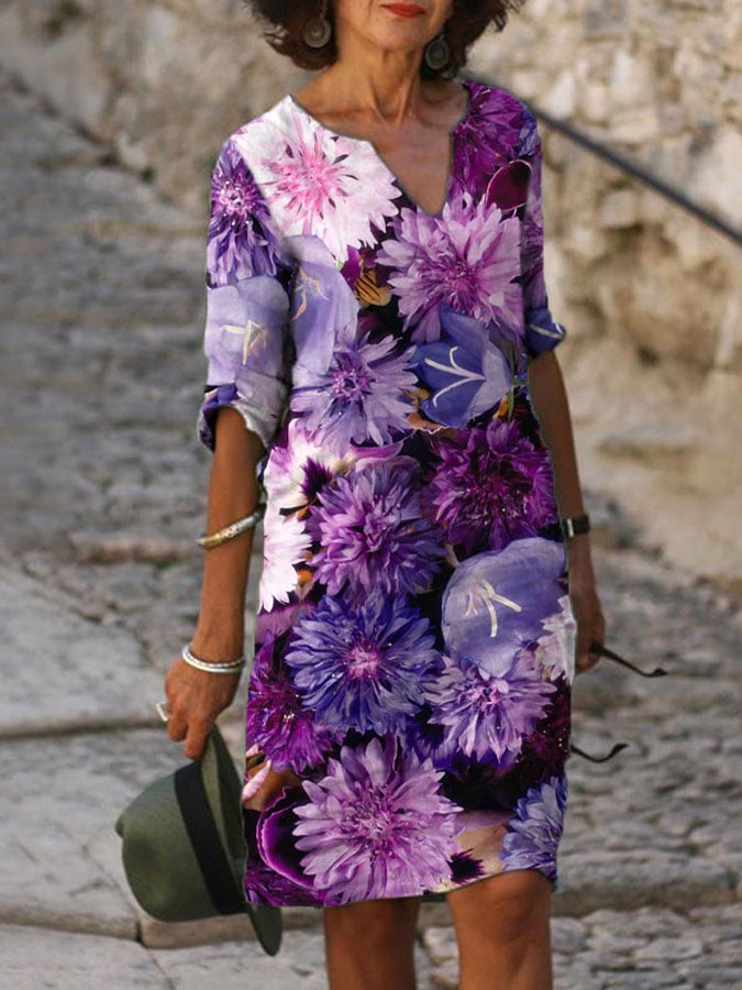 Women's Alzheimer's Floral Print Cotton And Linen Dress