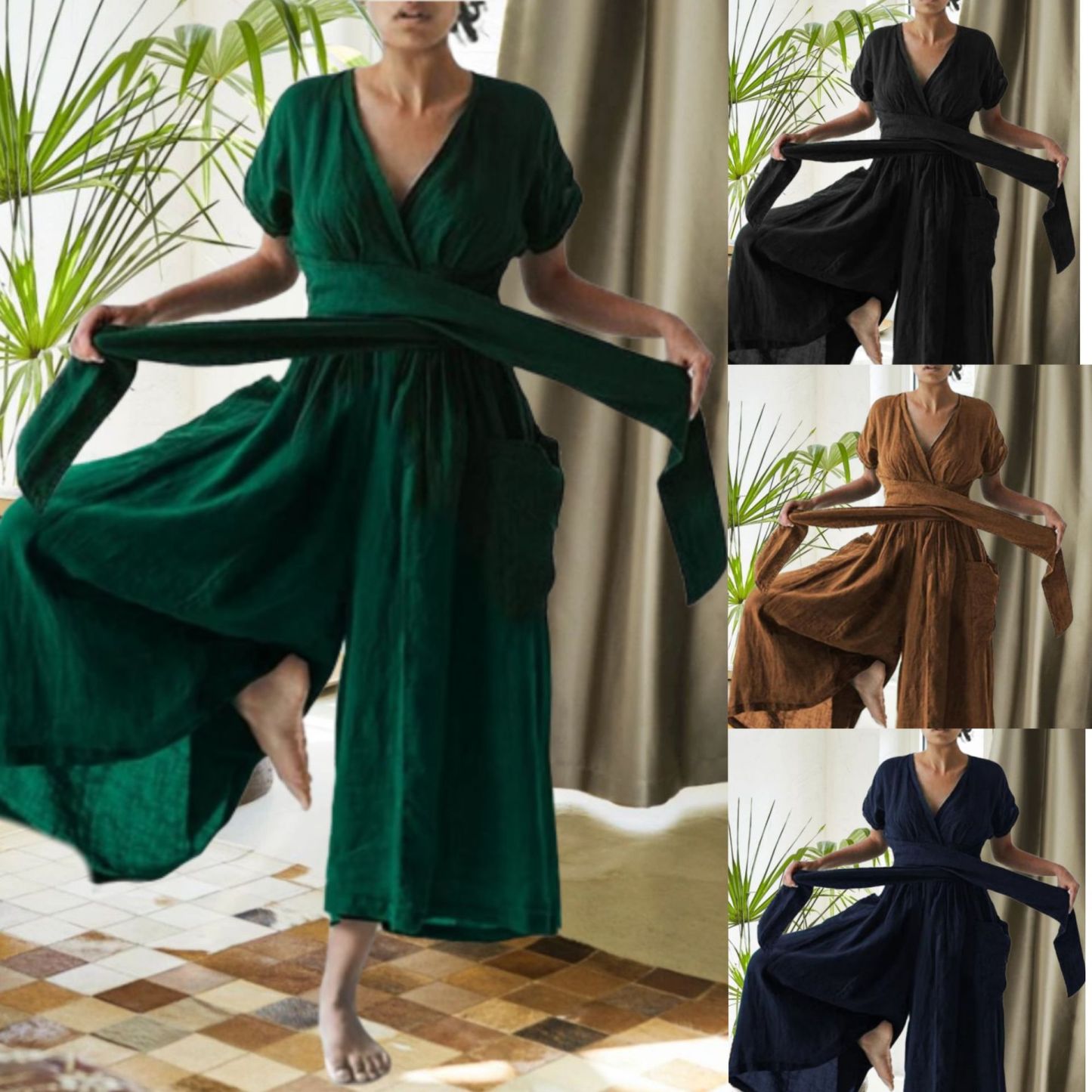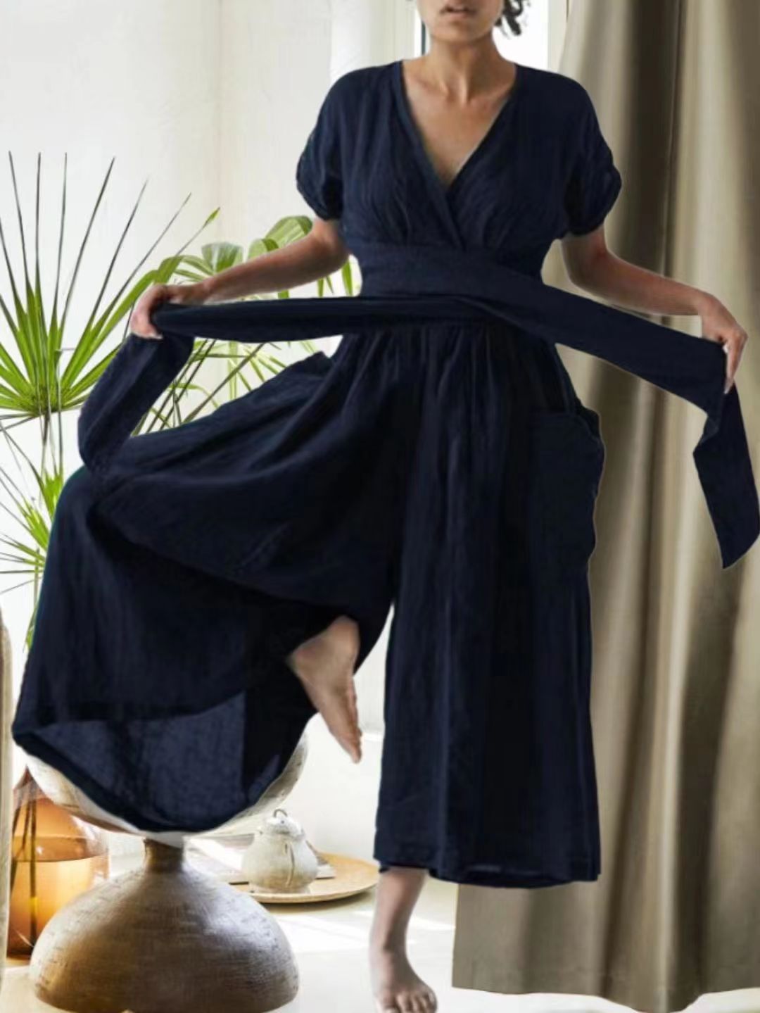 Wabi-Sabi Cross-brecket Pocket Jumpsuit