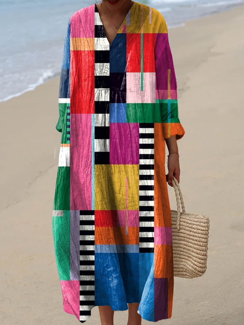 Women's Abstract Geometric Pattern Art Print Cotton Dress