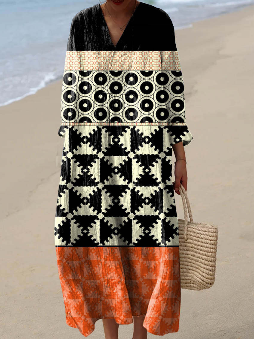 Women's Abstract Geometric Pattern Art Print Cotton Dress