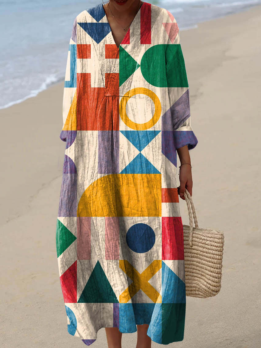 Women's Abstract Geometric Pattern Art Print Cotton Dress