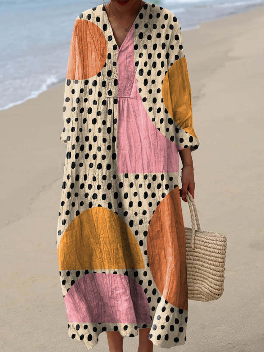 Women's Abstract Geometric Pattern Art Print Cotton Dress