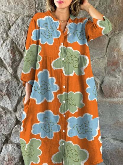 Women's Art Botanical Floral Print Single Breasted Dress