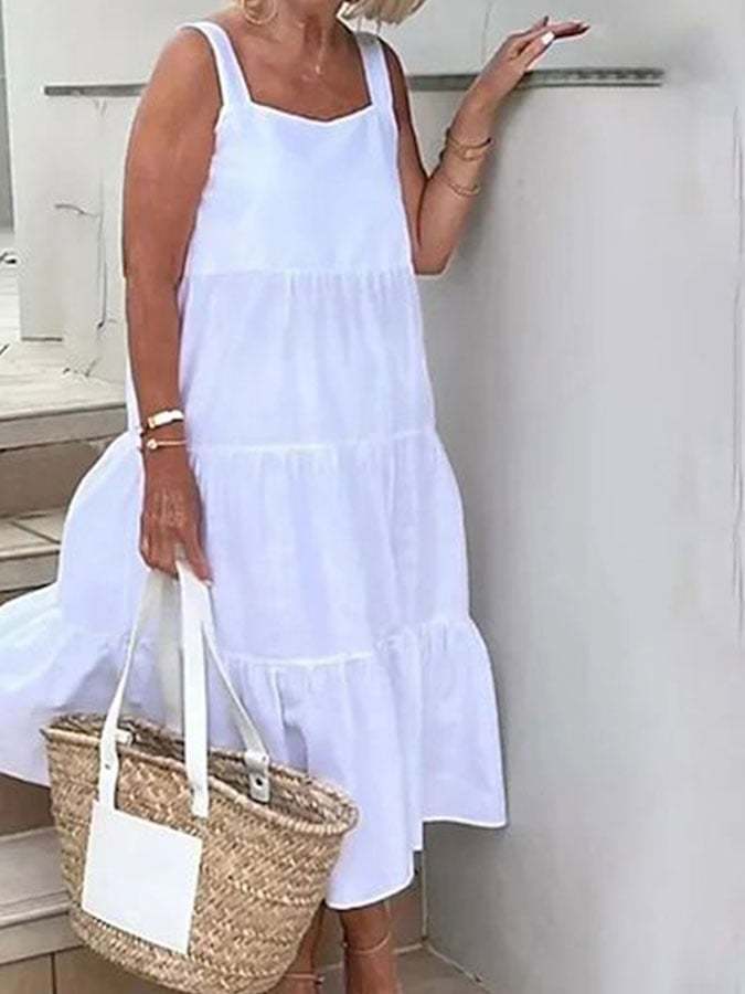 Women's Cotton And Linen Loose Suspender Dress