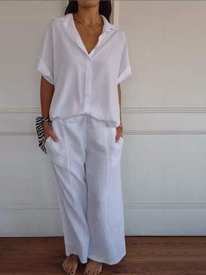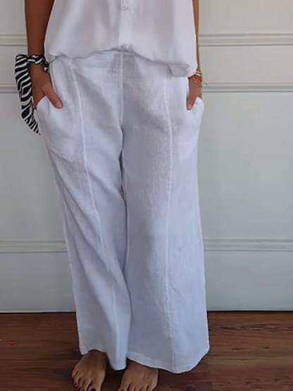 Women's Cotton and Linen Solid Color Two-piece Set