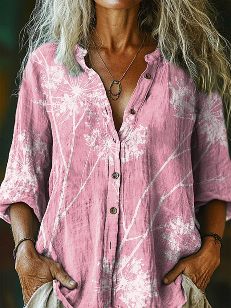 Women's Floral Pattern Art Print Casual Cotton Linen Shirt