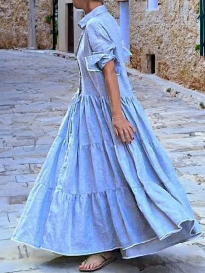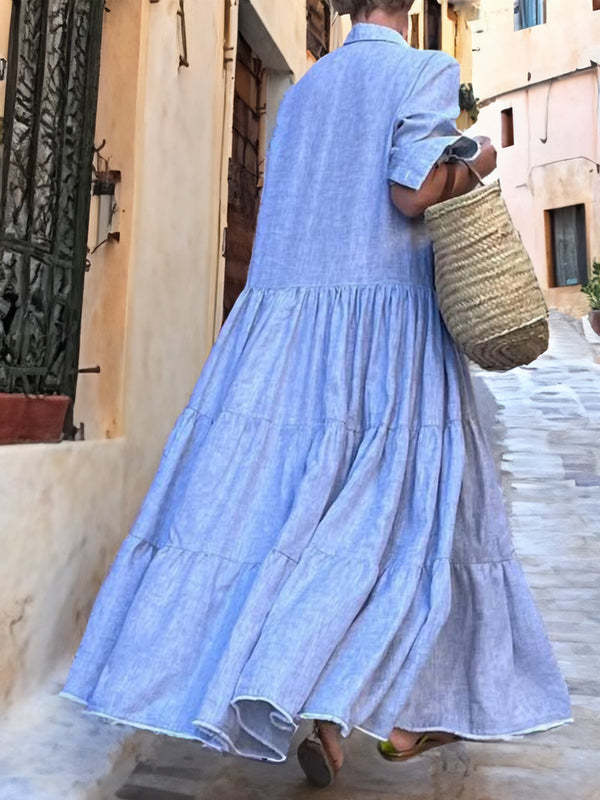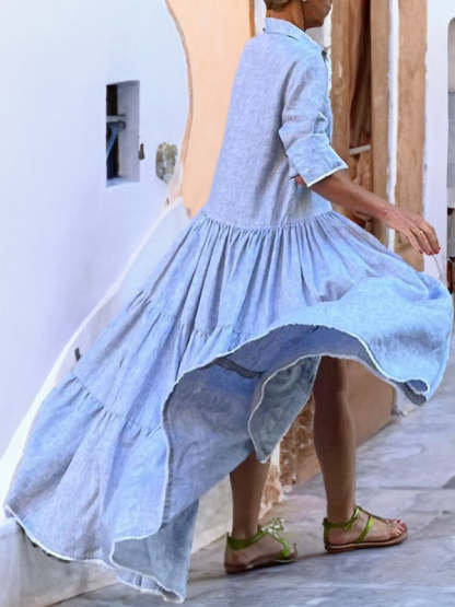 Women's Long Sleeve Layered Shirt Swing Maxi Dress