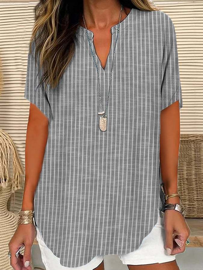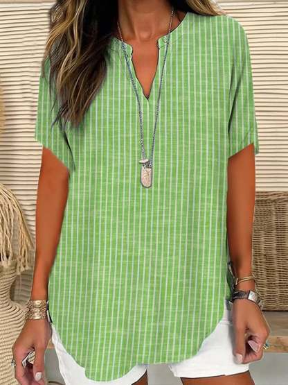 Women's Retro Classic Striped V-Neck Loose Short-Sleeved Shirt