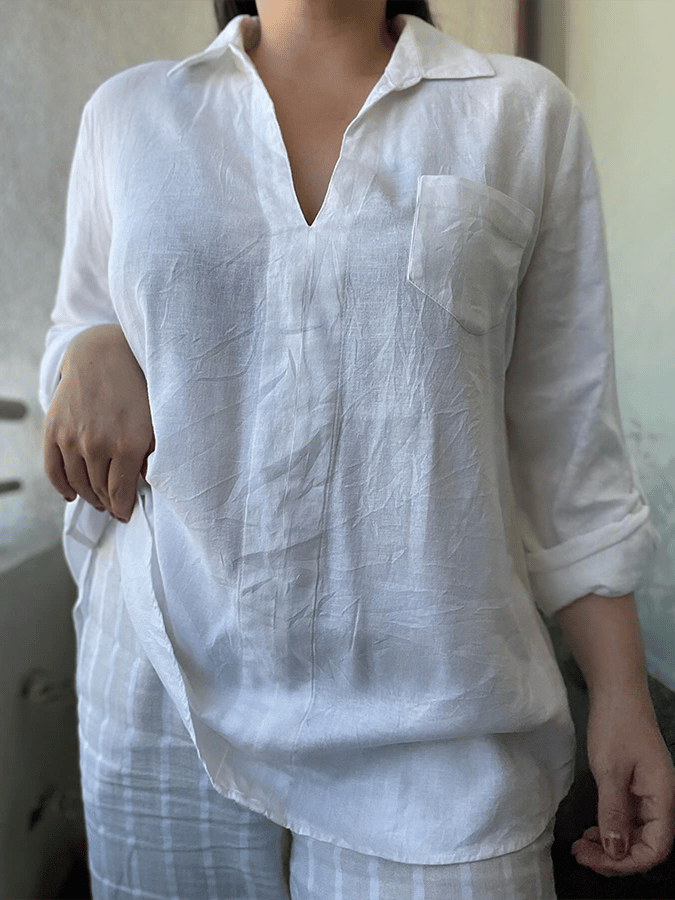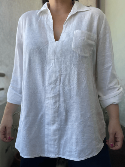 Women's V-Neck Pocket Design Loose Casual Shirt