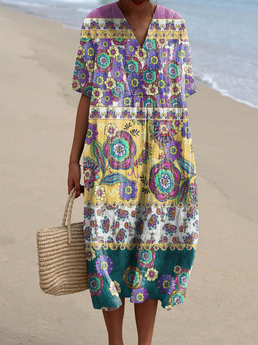 Women's Vintage Flower Art Print Flowy Dress