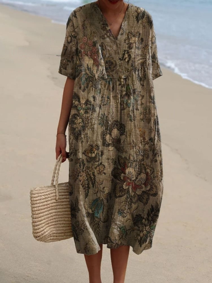 Women's Vintage Flower Art Print Flowy Dress