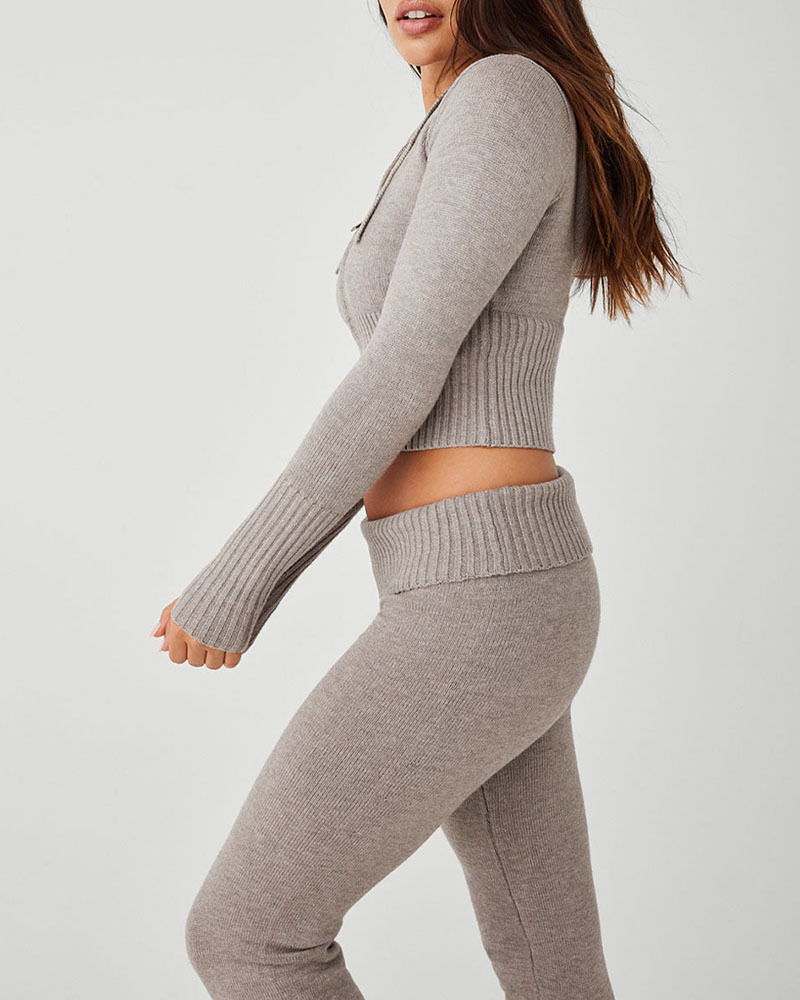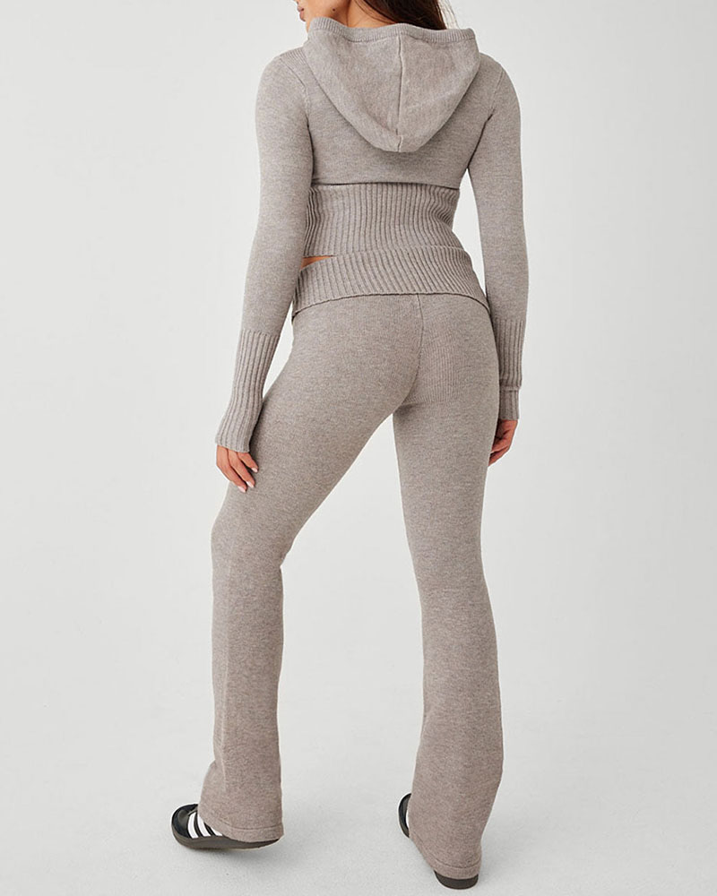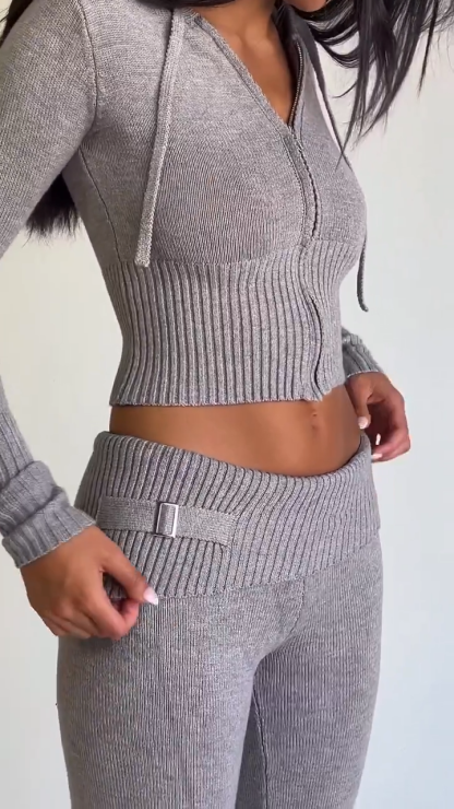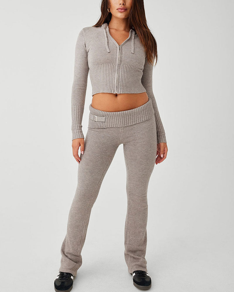 Zippered Slim Cropped Knit Two-Piece Set