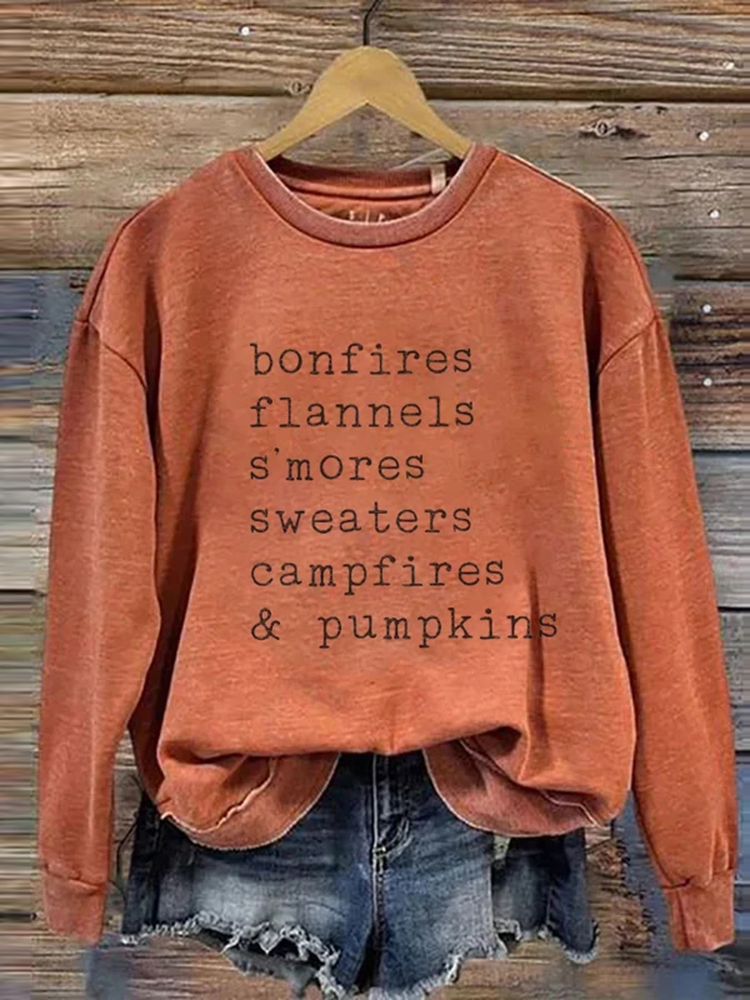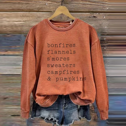 Bonfires Flannels S'mores Sweaters Campfires And Pumpkins Print Sweatshirt