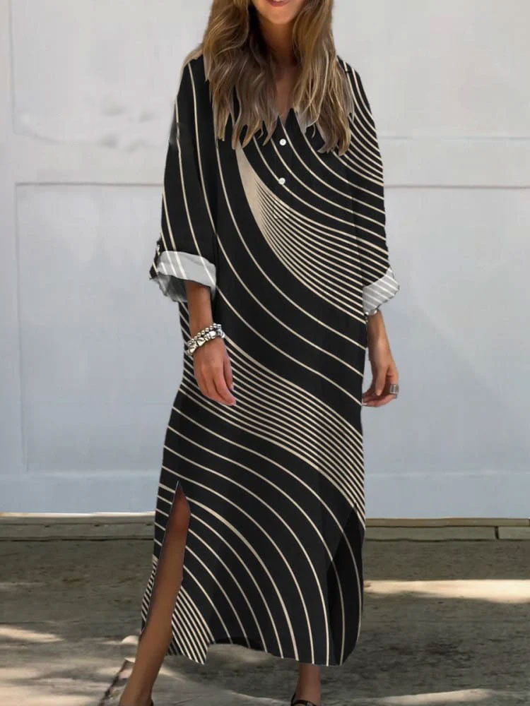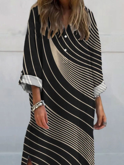 Contemporary Geometric Pattern Printed Women's Pocket Cotton Dress