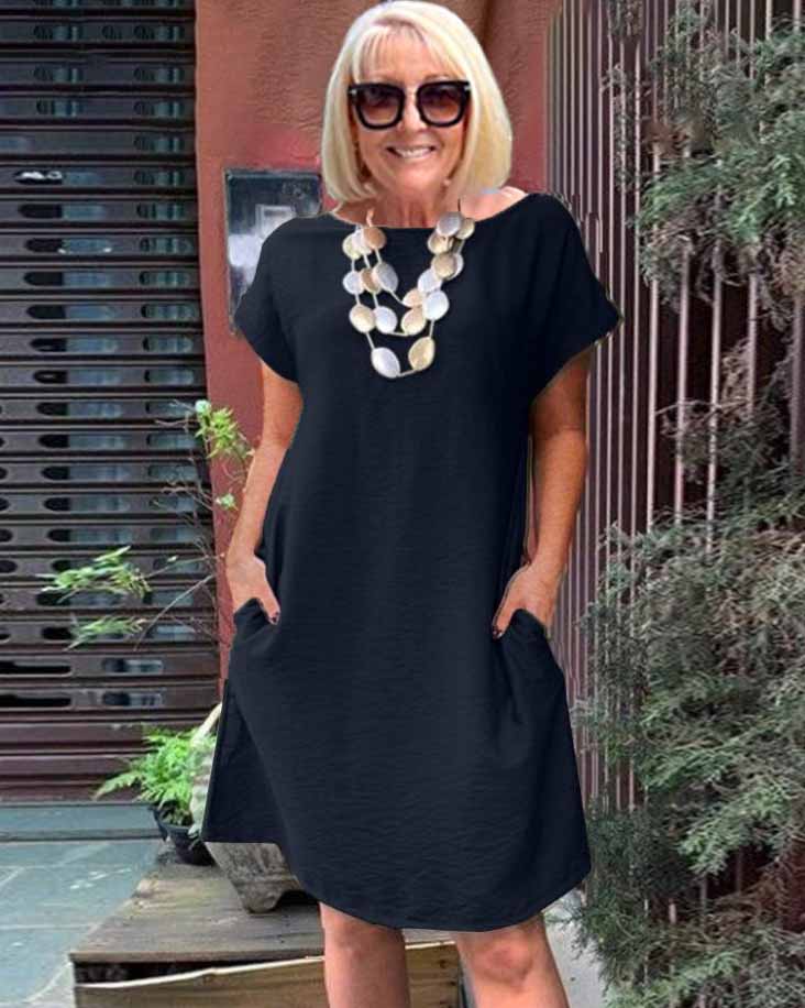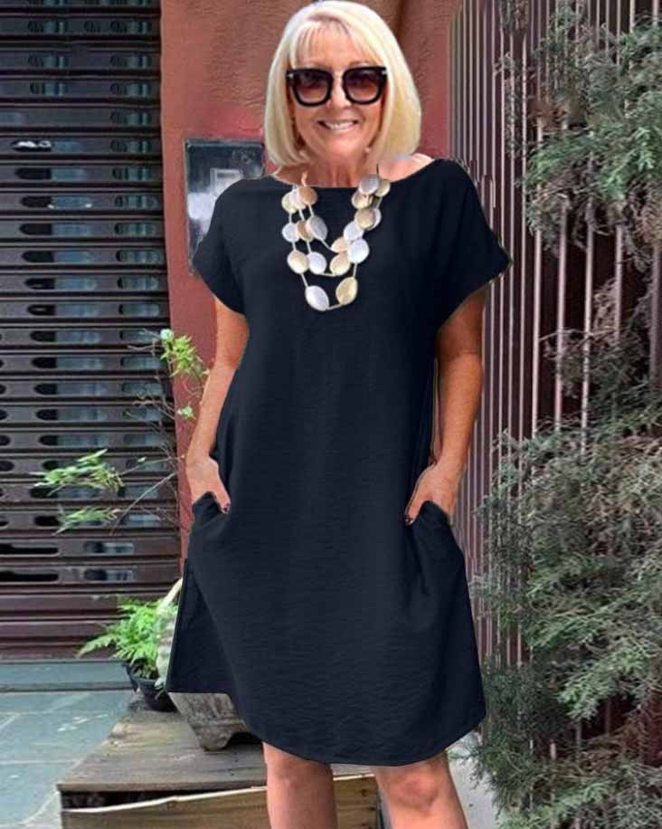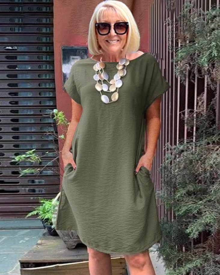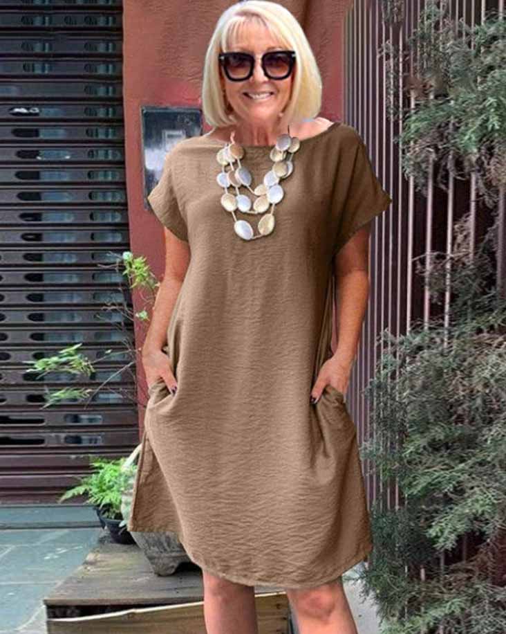 Pocket Cotton Linen Dress Casual Women's Clothing