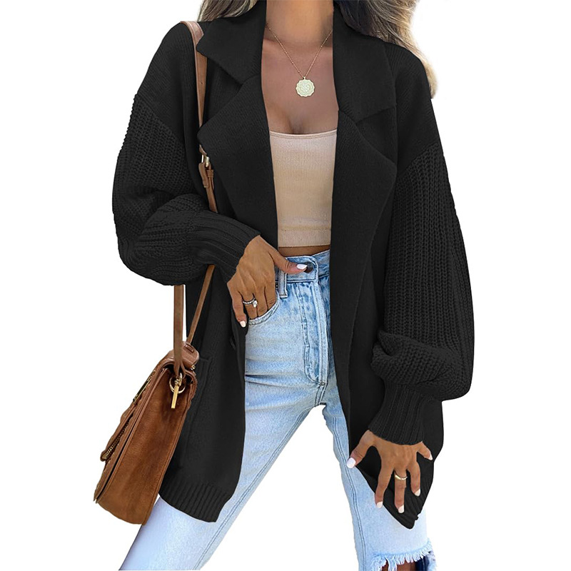 Solid Color Long Sleeve Knitted Sweater Cardigan