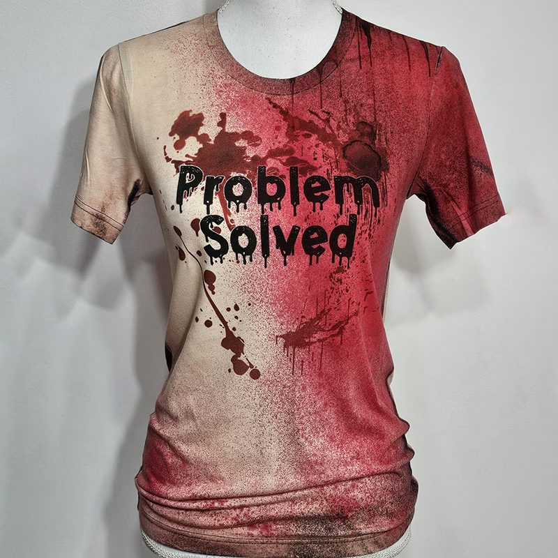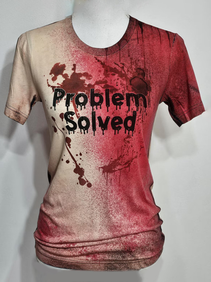 Unisex Retro Bloody Problem Solved Halloween Art Pattern Print Cotton Graphic T-shirt