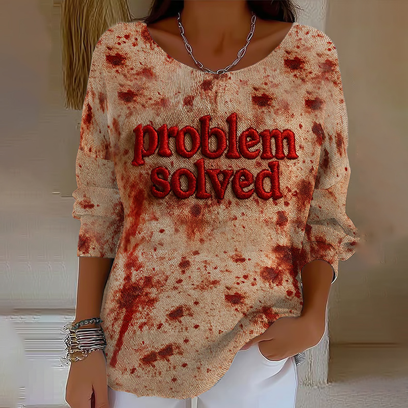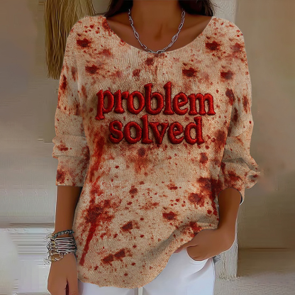 Vintage Bloody Problem Solved Halloween Blood Stain Long Sleeve T-shirt