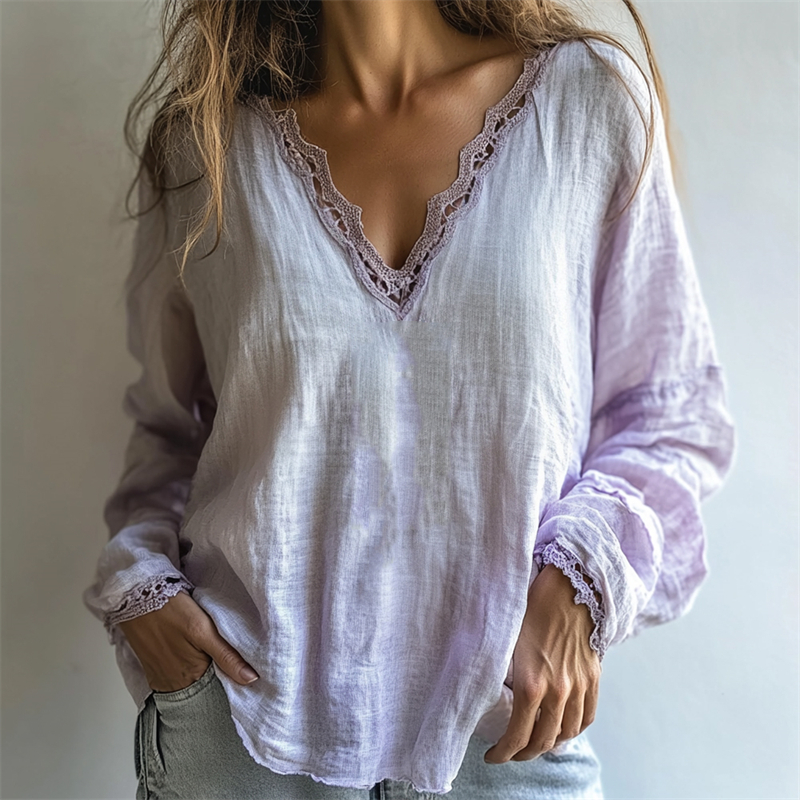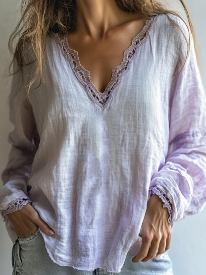Vintage Boho Gradient Lace Hem Linen Blend Tunic